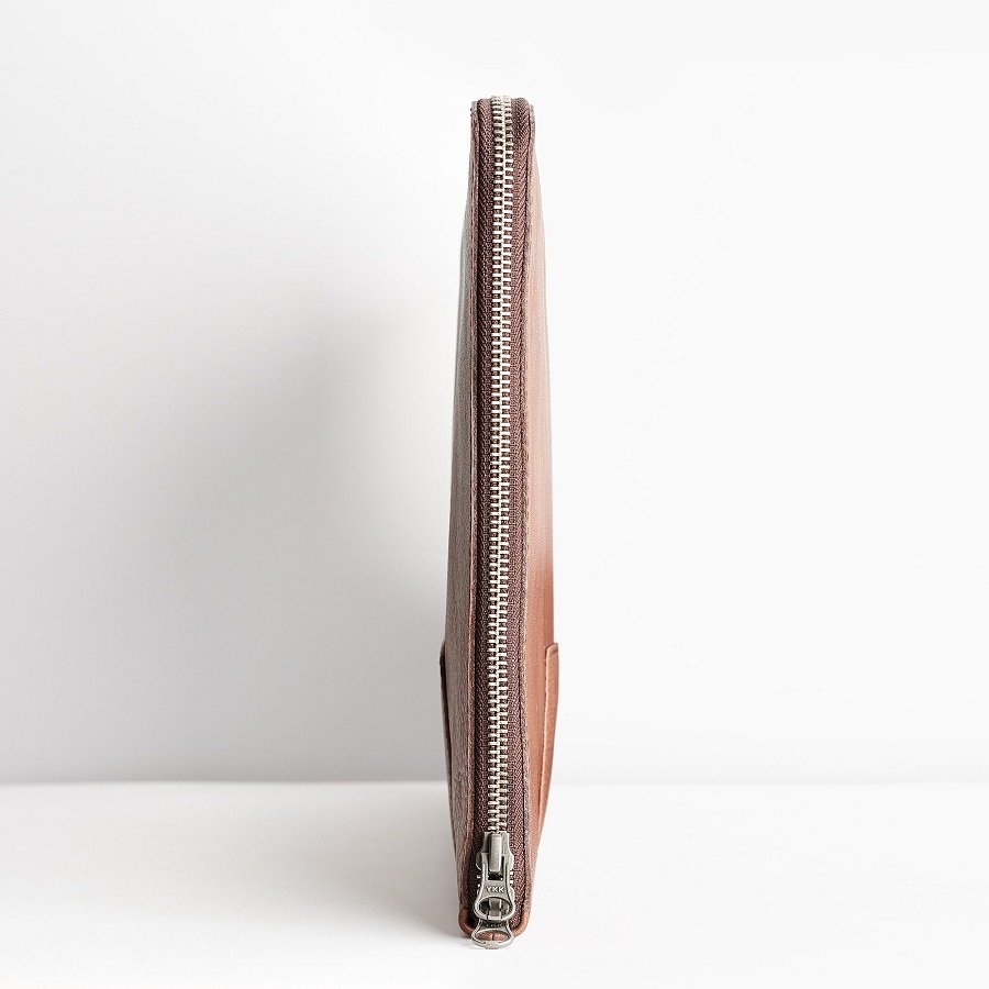 This minimalist leather passport wallet is cut from Veilance-spec water-resistant Horween leather. It has a stitch-free construction to keep it slim, so it’ll easily fit in your blazer pocket. Made in Canada, the style looks just as appropriate with a suit as it does with a pair of jeans and a sweatshirt.