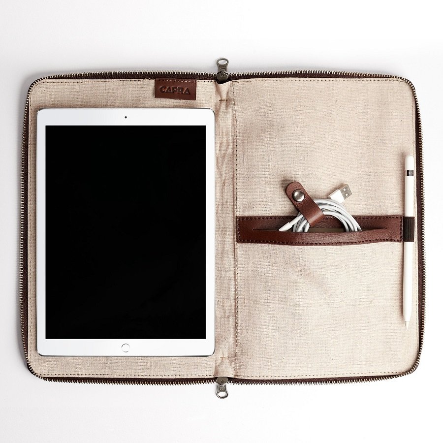 Made in the USA from full-grain aniline leather, this slim briefcase features solid brass hardwear and a signature 6.4-ounce twill lining. Designed to hold a laptop or tablet, this briefcase will pair nicely with your suitcase for any professional trip. What’s more, you’d be hard-pressed to find a better quality bag for the price — it’s a near steal.
