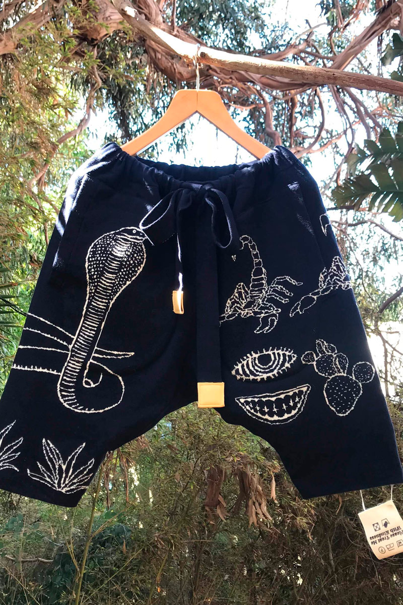 The brand’s first release includes three hoodies, four crew necks and three pants, available in two sizes each (S/M and L/XL). Knit in LA, the sweaters feature wild designs inspired by various “trips,” among other things. A scorpion, mushroom, cobra and tigers adorn one crew neck, while an oversize hoodie is emblazoned with a huge yin-yang symbol. Prices reflect the limited run, quality materials — yak yarn, deer skin leather trims, custom knit labels — and domestic manufacturing. A pair of pants starts at $664 and the most expensive hoodie is $1,232. To sweeten the deal, each sweater purchased comes in a tie-dyed cotton laundry bag from the Chateau Marmont.