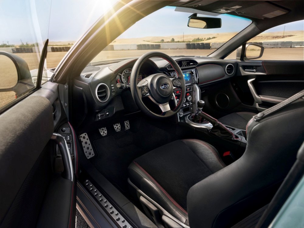 Inside, the car features a mostly black interior with Alcantara materials throughout much of the cabin. The car also gets red contrast stitching. There are also red accents on the seats and red BRZ tS logos inside the car. The engine and transmission for the BRZ tS are no different than the standard car.