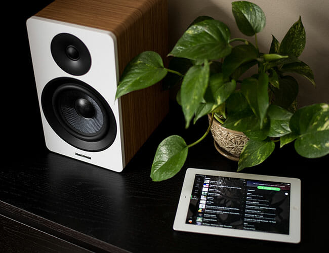 The Fluance Ai60 are powered bookshelf speakers, meaning that they don’t require additional amplification or components because each speaker has a 100-watt class D amplifier built directly into it; you can hook them straight into your turntable, CD player, stereo or AV receiver, or even your new 4K TV (via optical), and they’ll just work. Basically, it simplifies the setup process. There’s also a subwoofer output in case you want to add additional bass. And the speakers support Bluetooth aptX, too, so you can stream audio straight from your smartphone or tablet if you like.