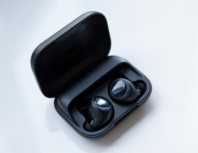 On the surface, Klipsch’s T5 True Wireless earbuds look similar to the Jaybird Run. They have the same shape and should fit in most people’s ears; plus, they come with swappable silicon tips, which Klipsch says provide an “excellent seal for noise isolation and superior bass.” As you’d expect, they’re supposed to deliver the same excellent sound that you’d expect from Klipsch. Maybe the neatest feature of the Klipsch T5 True Wireless is its carrying case. It’s small, roughly the same size and shape of the AirPods’ charging case. It’s also strikingly metallic and looks like a Zippo lighter. I have to admit, it definitely looks cool.