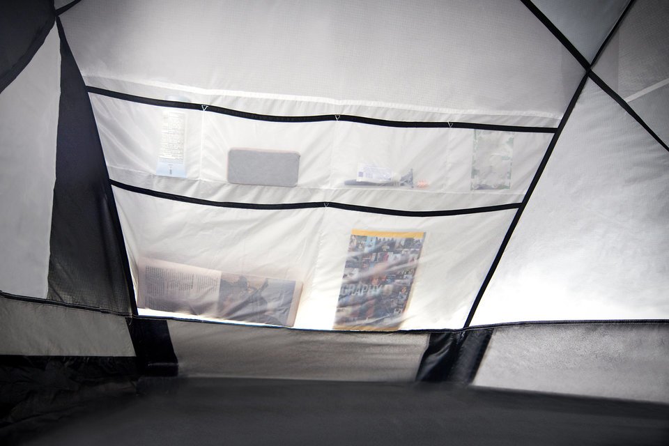 The paneling mesh, which offers a great view as well as great ventilation. It’s also bugproof. A seam-sealed waterproof polyester rain-floor, as well as cut-in floor, comes with the tent too. Inside the tent will be pockets for extra added storage.
