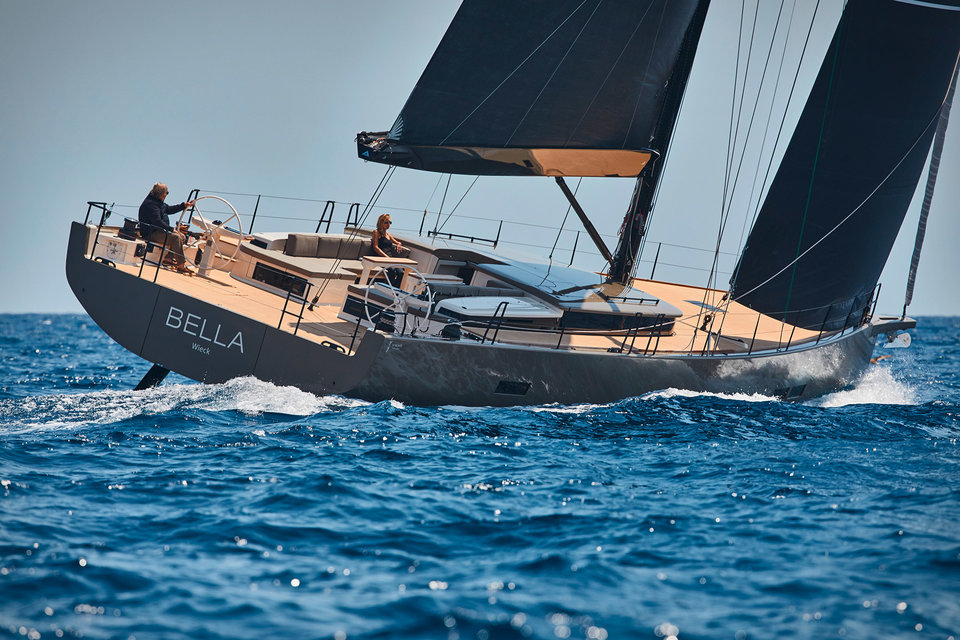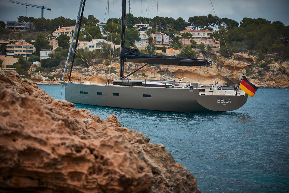 The 70-foot S/Y Bella is the first of the new Y7 range. It’s built in Germany and comes with a smattering of really cool stuff, like carbon fiber masts and trees. That’s standard, by the way. There are five different below-deck layouts available, with the standard design containing a main bedroom, VIP cabin, and a saloon.
