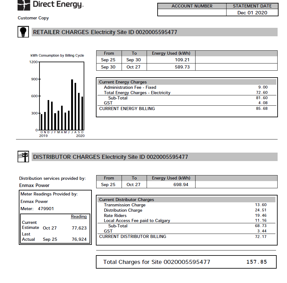 First, here are the last 3 months of my electricity usage and costs, per my utility bills starting in November 2020.