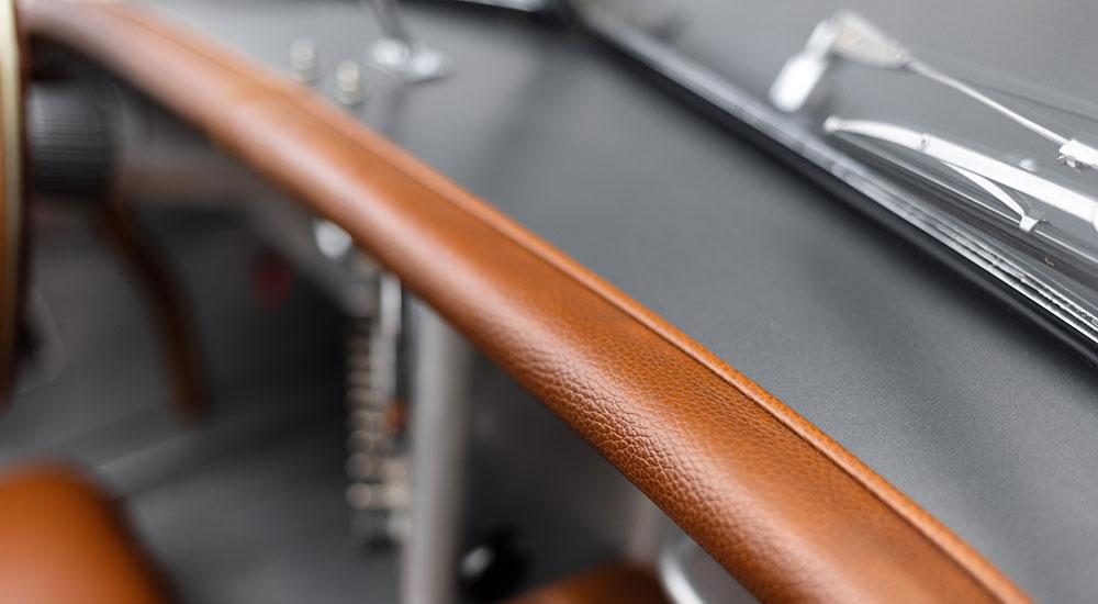 For added safety, all four wheels are fitted with new disc brakes and fit snugly within the Dunlop wheels with Avon ZZ rubber. We can’t help but admire the exquisite brown leatherwork of its interior that contrasts beautifully with the matte gunmetal exterior. This 1951 Jaguar XK120 will not stay available for long.