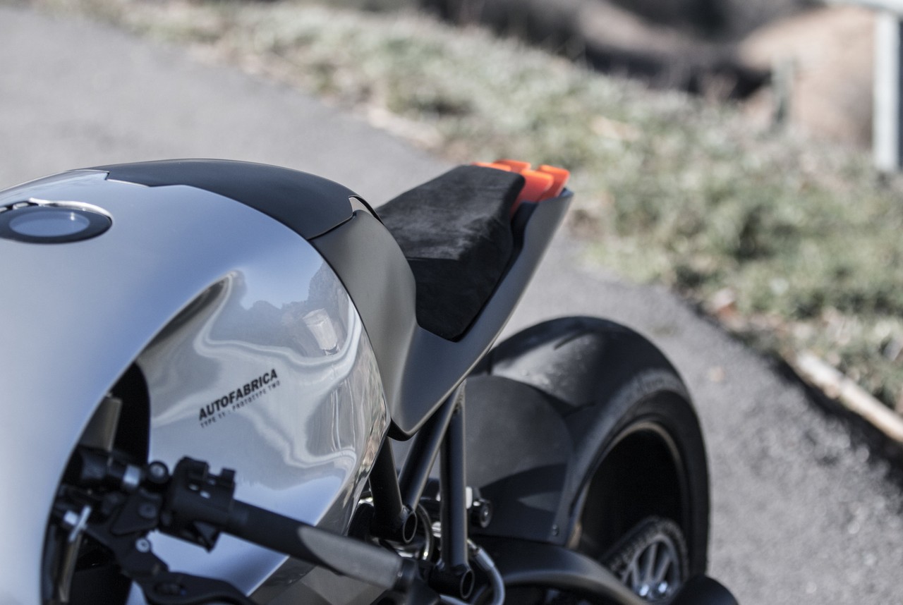 The result is a beautifully-shaped metallic ride that measures a slender 21 inches (54 cm) in width, totally deserving the name of ‘Lane Splitter 54’.