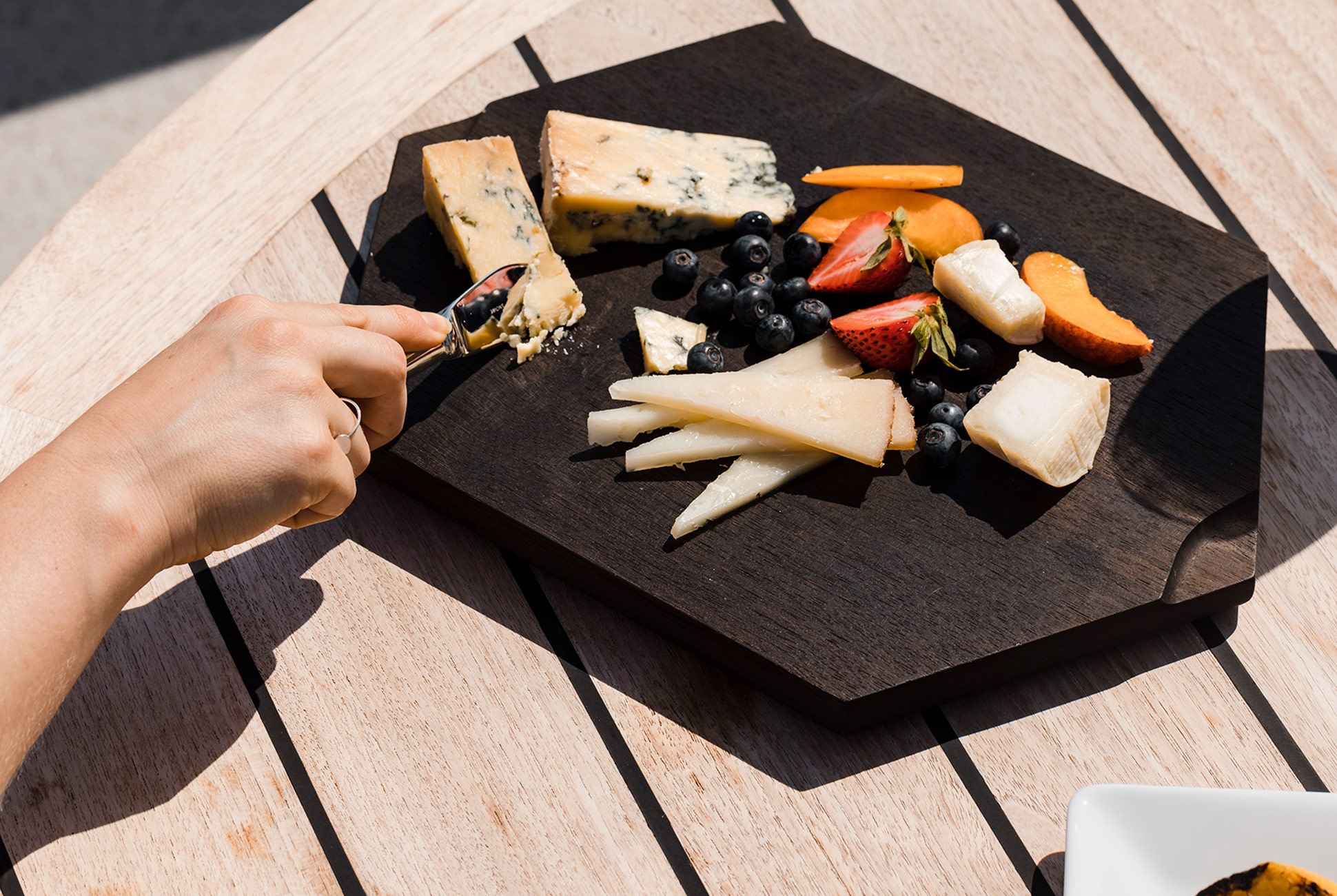 It’s always nice to get the whole package in one purchase. This is an easy one: an American-made walnut cheese board and a set of three-piece Italian-made stainless steel cheese knives.