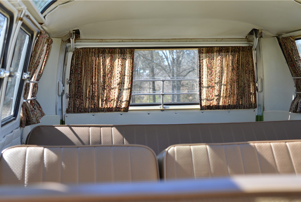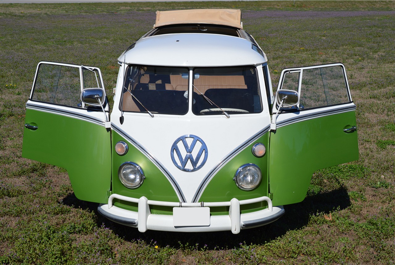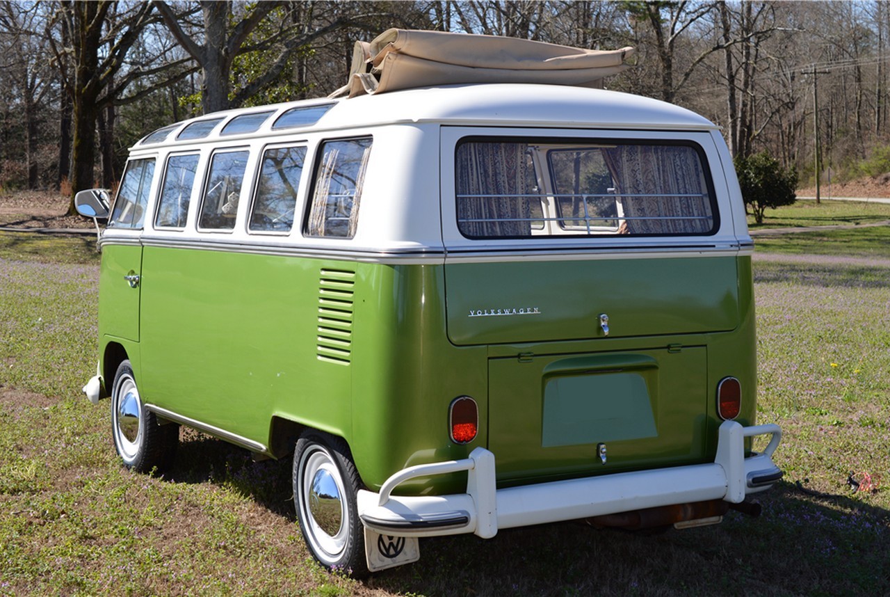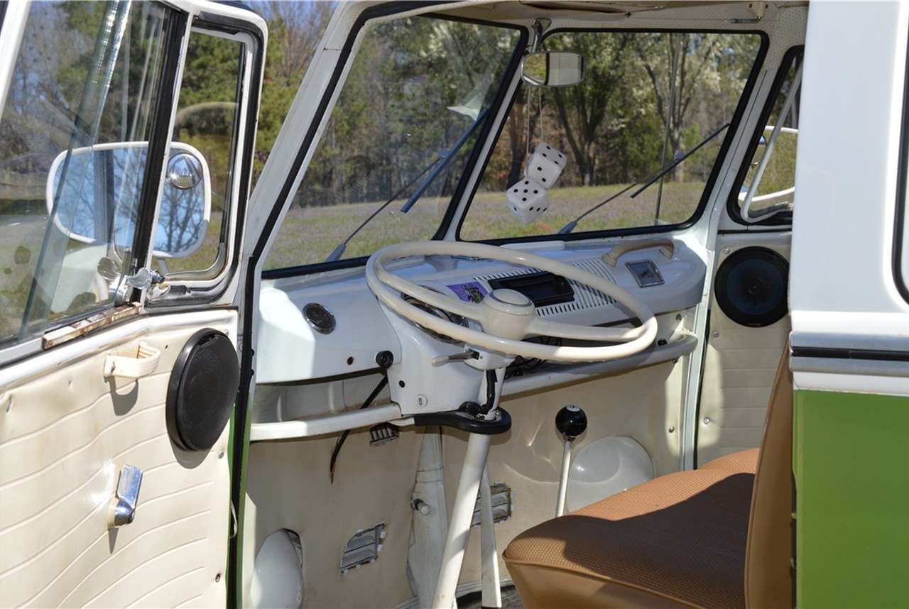 Powered by a 1600cc 4-cylinder engine matched with a 4-speed manual transmission, the iconic hippie van (model year 1967) has had the brakes and engine recently serviced, and it rides on new tires. It boasts a green/white exterior and beige interior.