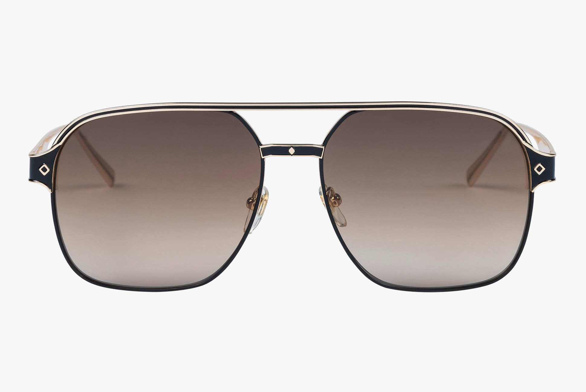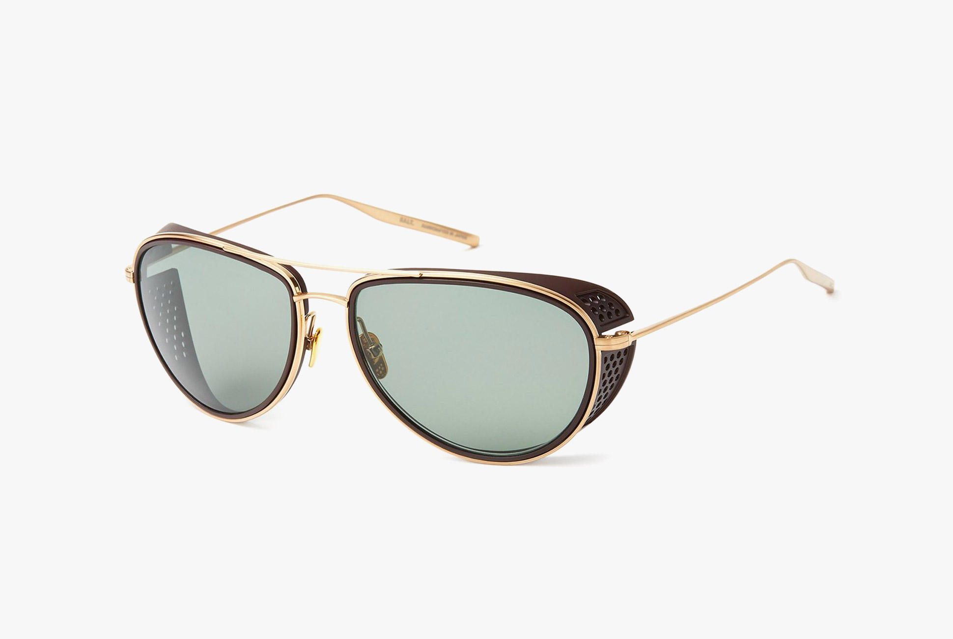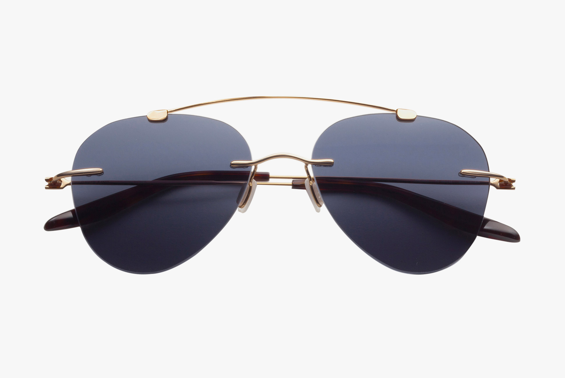 These ’70s-inspired aviators feature an elongated shape and bronze CR39 lenses. Made in Japan from titanium, they have monoblock hinges, custom 4mm rim wire and custom nose pads with hairline engraving. This style is limited to 450 pieces.