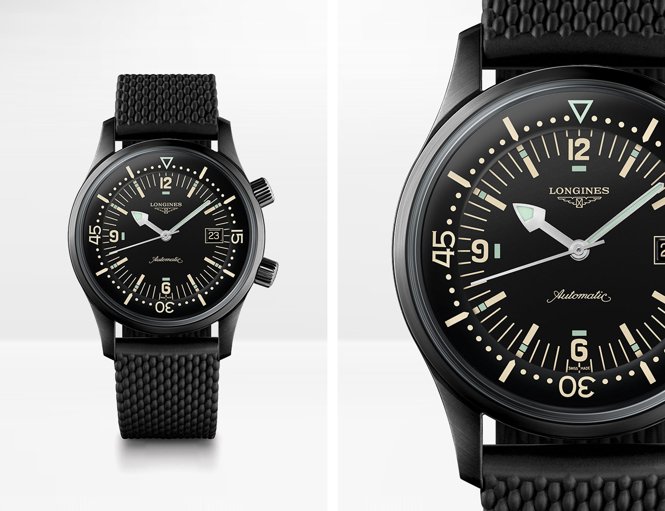 Since its launch way back in 2007, the vintage-inspired Legend Diver has been an overwhelming fan-favorite in Longines’ lineup. Its gotten numerous tweaks over the years, but at Baselworld 2018, the watchmaker gave the watch the all-black treatment (not to mention a revised movement with a 68-hour power reserve). It’s a look that gives this decidedly old-school diver a more modern look, and we can’t help but love the way the mint and tan indices intertwine with the black backdrop of its dial, bezel and case.