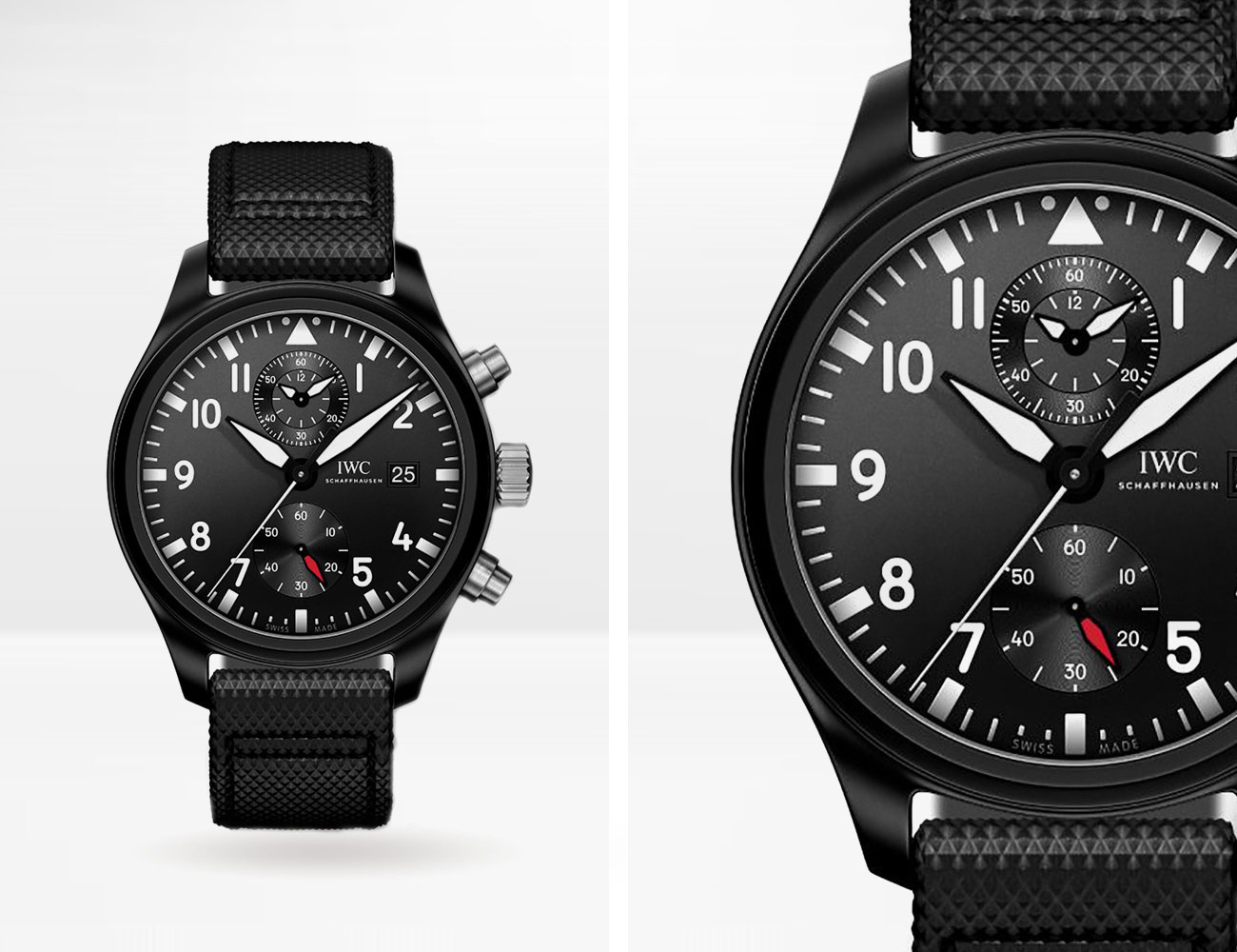 IWC’s Top Gun-inspired chronograph (not so much the movie but the elite Navy flight program) is one of the finest pieces in the brand’s expansive pilot watch lineup. The watch is notable for its use of ceramic and all-black color scheme, yes, but the real standout on this watch is the gem of a movement inside. It’s an in-house automatic chronograph with a flyback function, which allows the chronograph seconds hand to reset to 12 o’clock and seamlessly advance forward again, with all the swiftness of a perfectly-exected windmill high-five.
