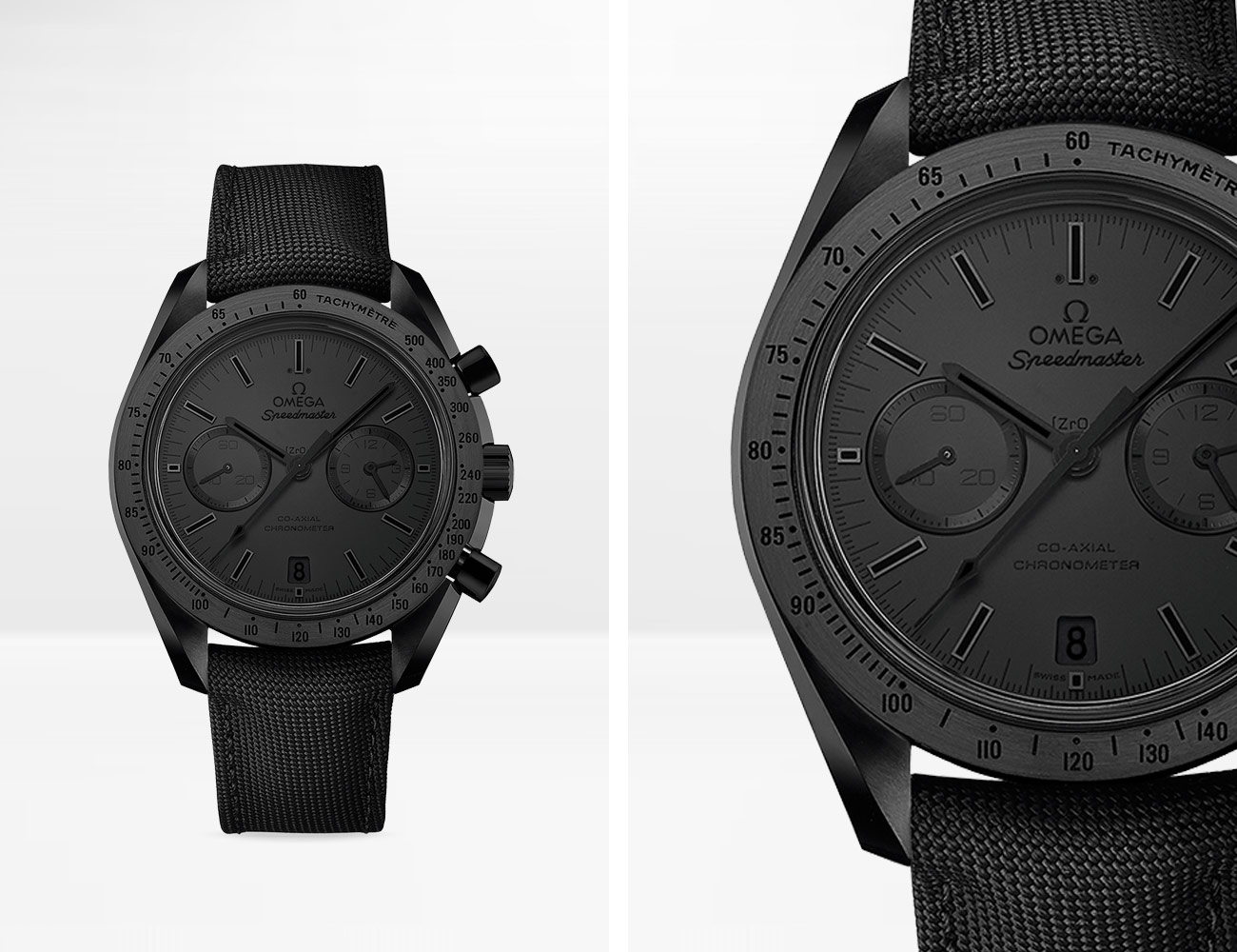 The aptly named Speedmaster “Black Black” is watchmaking’s take on “none more black.” A followup to the Speedmaster “Dark Side of the Moon,” the Black Black still reps a case chiseled from ceramic and a black dial. But it doubles down on the darkness by giving all its dial elements (hands, indices, branding, etc) a black treatment as well, and using black-colored SuperLuminova, which you’ll definitely need because otherwise, it’s one hell of a difficult watch to read.