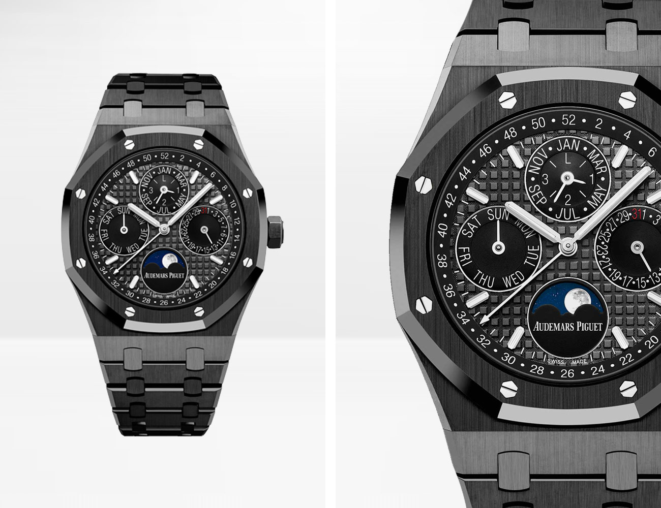 You may think the in-house, ultra-thin perpetual calendar movement is the highlight of this watch. But, really, it’s the hand-finished ceramic case and bracelet. Why? Consider this: the Royal Oak’s intricate bracelet in stainless steel takes six hours to complete. In ceramic? Try 30 hours. Needless to say, the stealthy black look of ceramic suits the Royal Oak’s iconically edgy design incredibly well, and when paired with one of the finest movements in the business, you have one of the finest pieces Audemars Piguet has ever released.