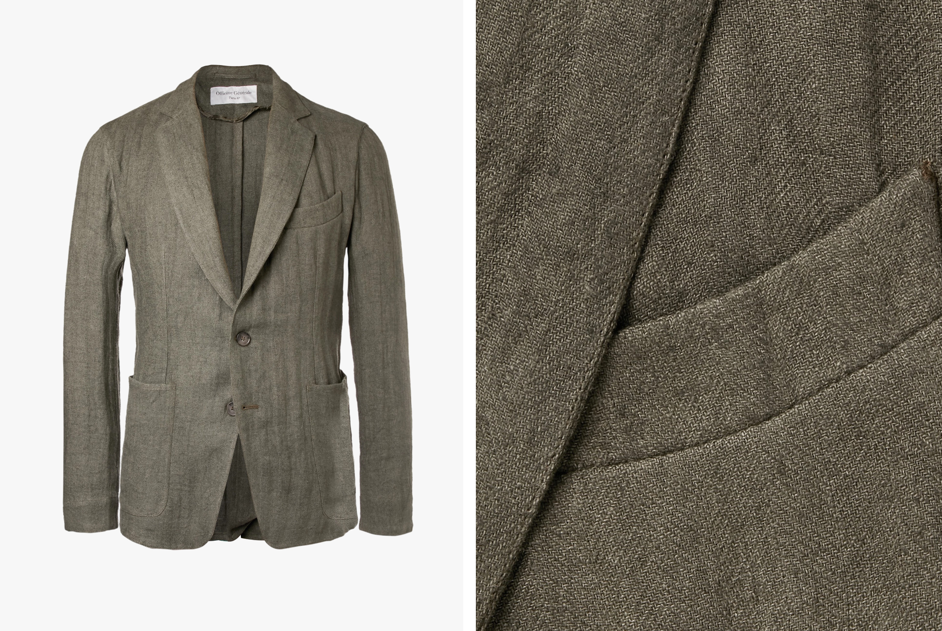 Officine Generale Unstructured Herringbone Linen-Blend Suit Jacket