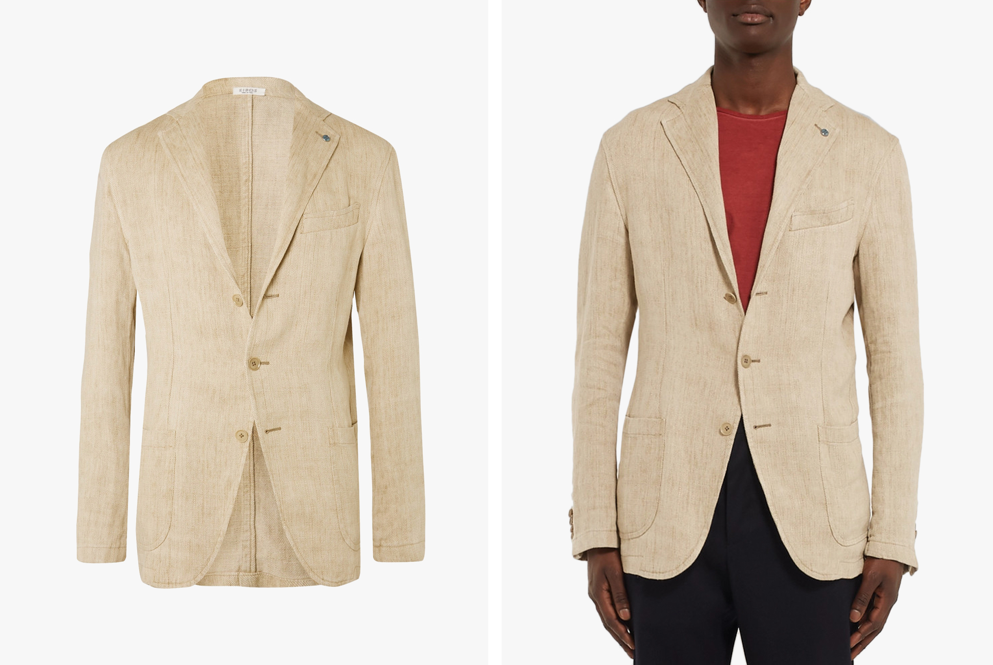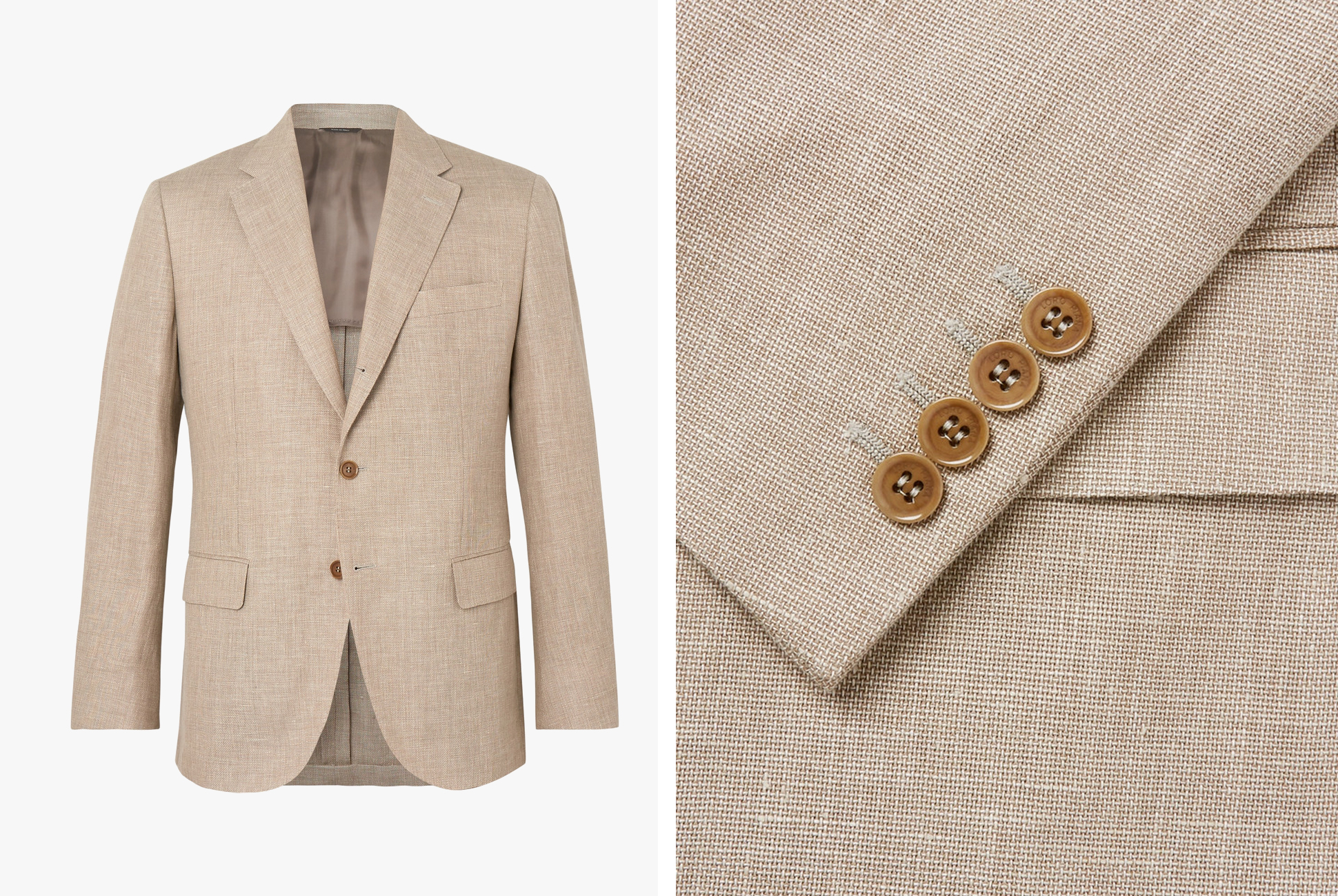 Made from breathable Irish linen, this slim-fit blazer features notch lapels, a chest welt pocket, two front flap pockets, a double vent and four internal pockets.