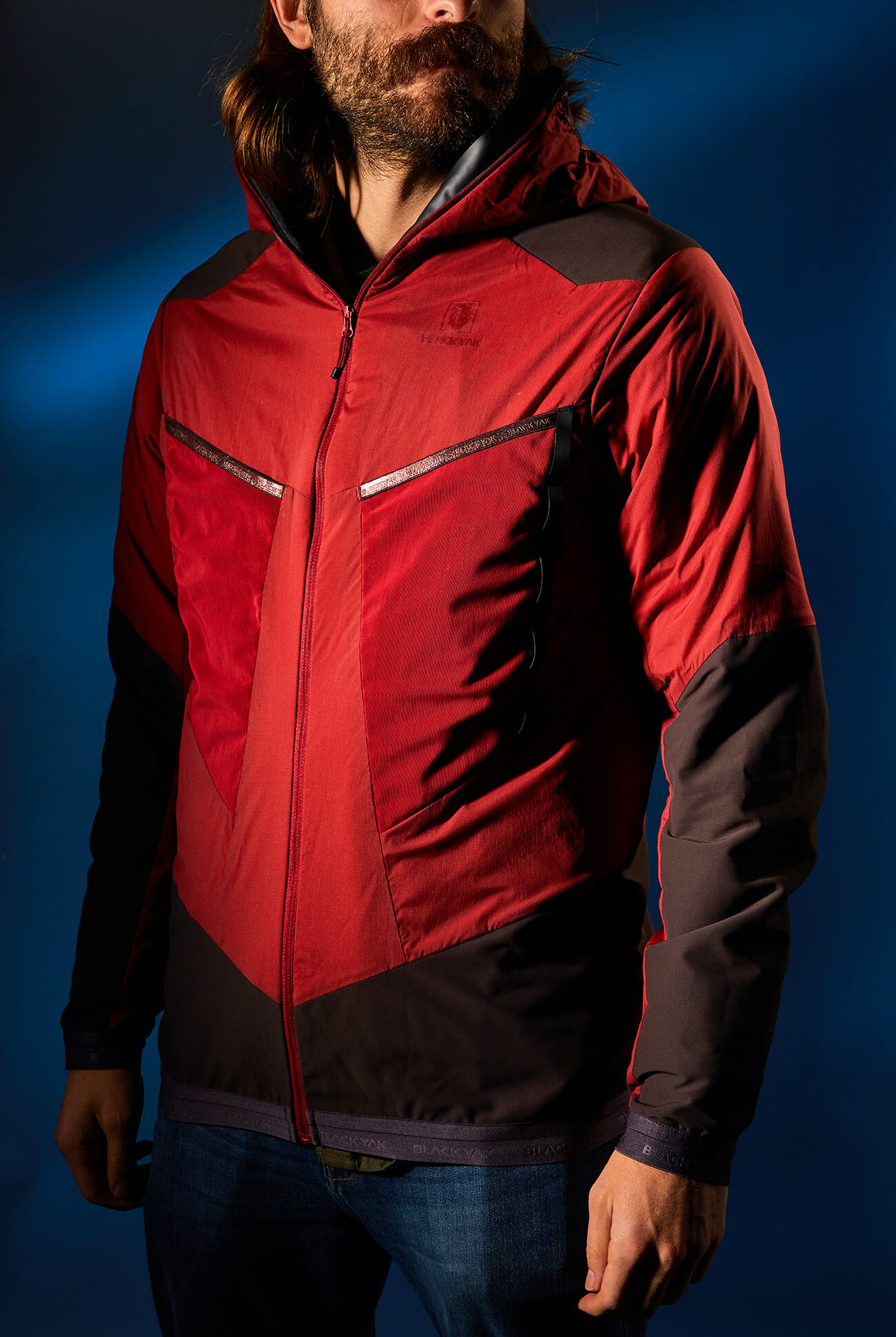 Like many of Blackyak’s jackets, the Yakutian is close-fitting and has an almost V-shaped, tapered cut to it. It also has the company’s trademark exterior mesh sleeve pockets, which are unconventional but make convenient receptacles for storing things on the go without unzipping. There’s also an interior chest pocket, which the Yakutian can pack down into for storage and packing. The insulation inside is Polartec Alpha, a type of active insulation that was first created for US Special Forces.