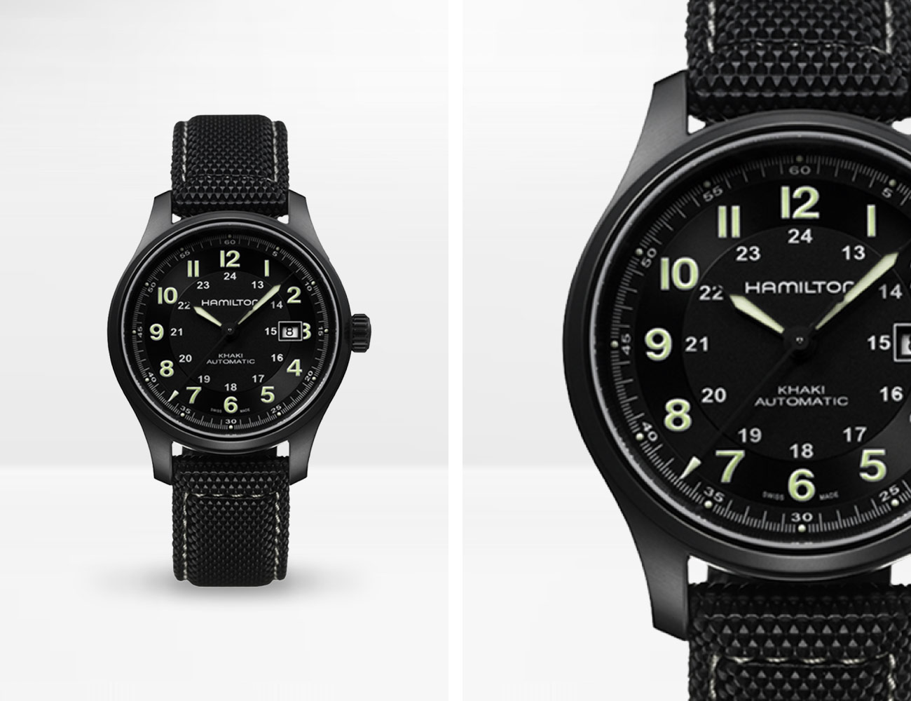Hamilton’s Khaki field watch line comes in a bevy of variations, but the titanium variant is undoubtedly a fan favorite. In addition to its titanium construction, Hamilton added a black PVD coating to the case, aiding in scratch resistance.
