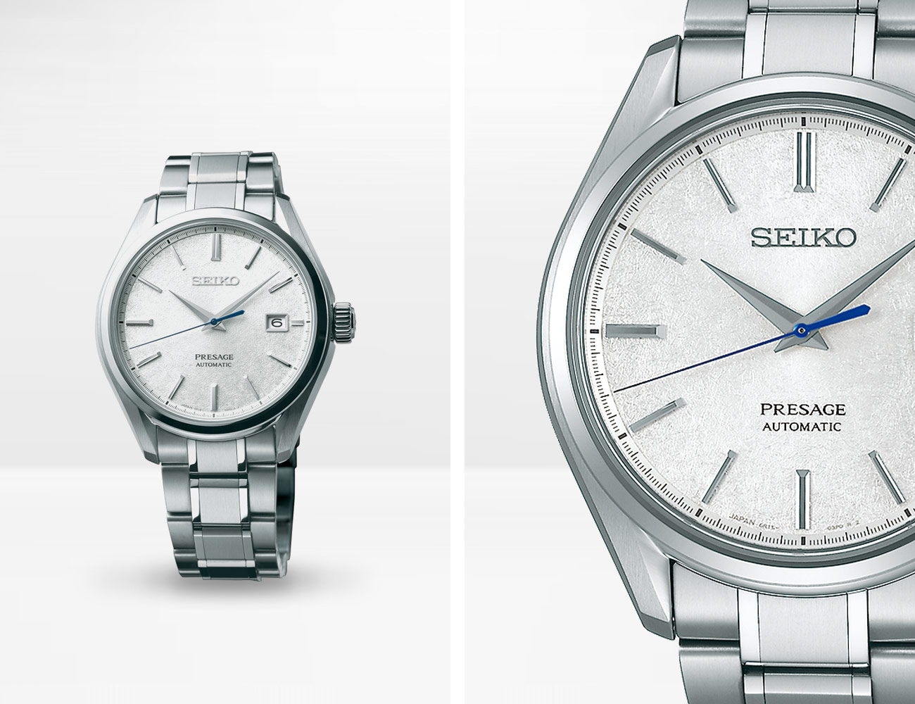Though titanium seems reserved for tough field watches and divers, this beautiful Grand Seiko-esque dress watch wears the material fabulously. That’s thanks to a sharp, well-defined case design and an incredible dial, finished with small, imperfect engravings that give it the look of freshly-fallen snow or a crisp sheet of washi paper.