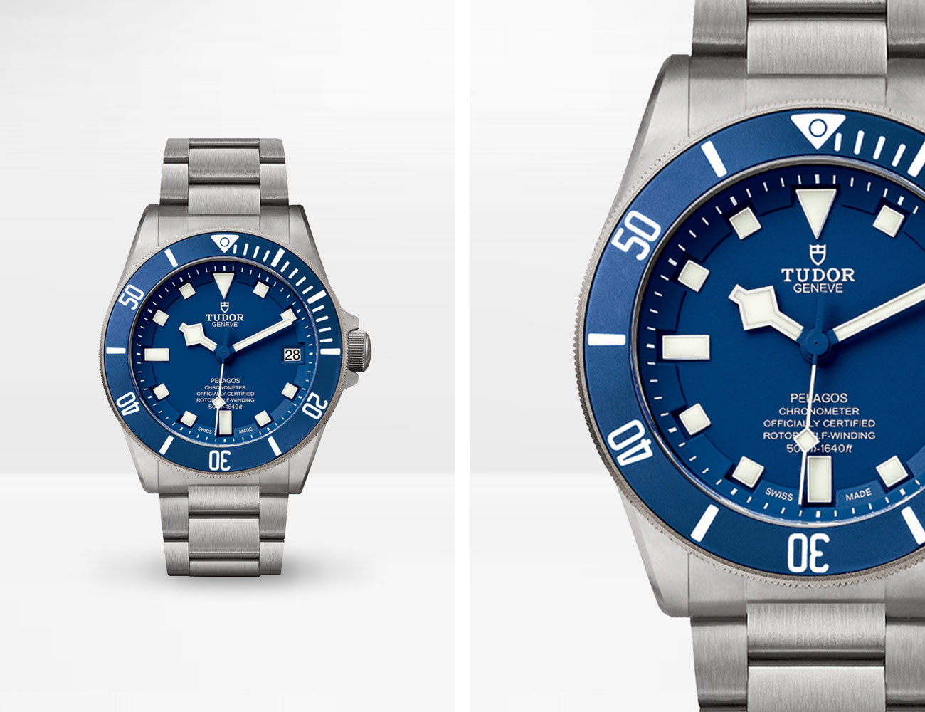 Though the titanium case (good for a 500-meter depth rating), blue dial and ceramic bezel are handsome, it’s the movement inside that makes Tudor’s titanium timpiece a standout. Inside the Pelagos ticks away an in-house automatic movement that meets the Official Swiss Chronometer Testing Institute’s (COSC) stringent accuracy tests.