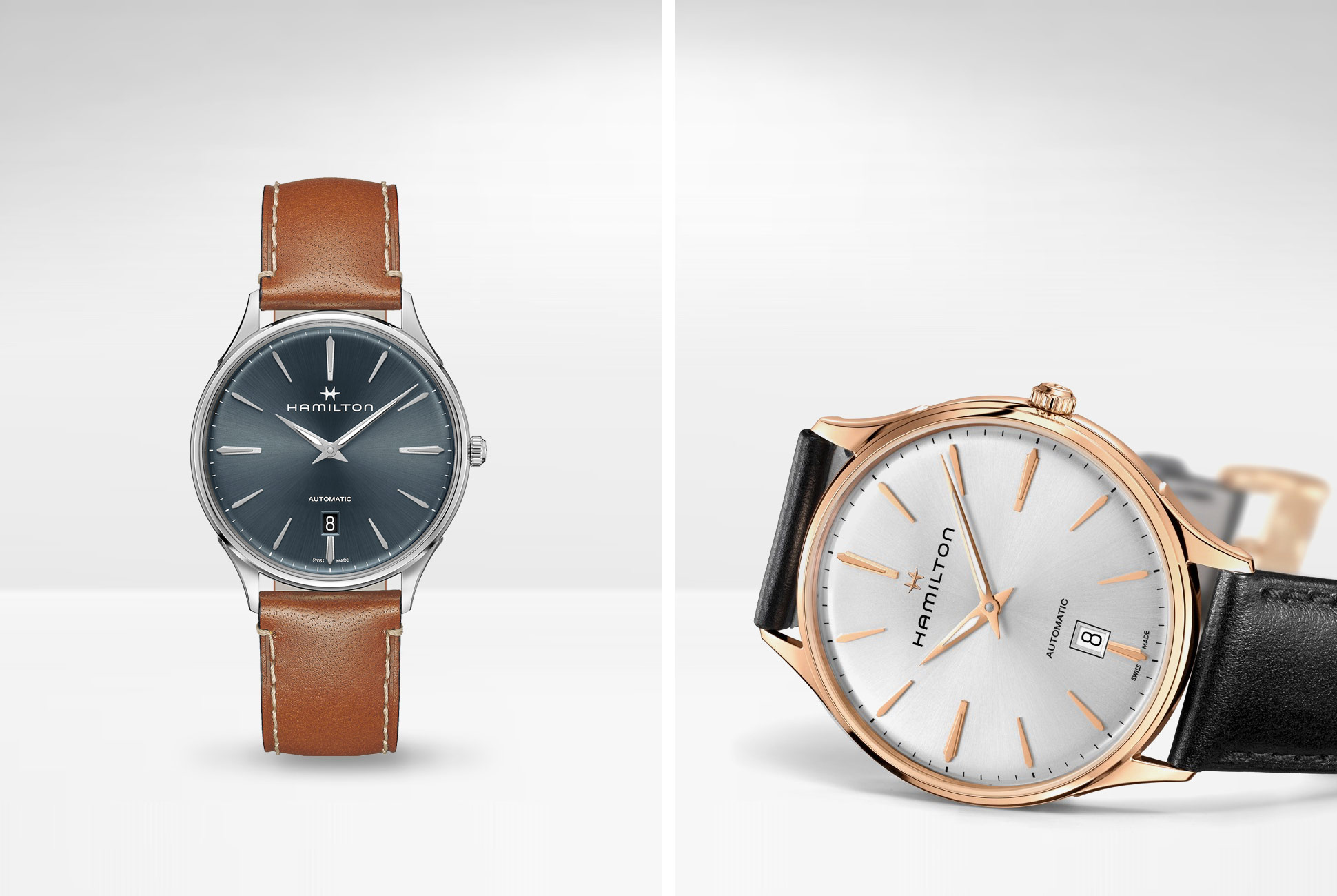 Most super-slim watches under a grand rely on a hand-winding movement to keep the overall case thickness down, but the Hamilton Jazzmaster manages to pack automatic winding and still come in at just under 8.5mm in height and $1,000 in price. The Jazzmaster Thinline is available in a handful of different dial colors, each with shimmering sunray finishing, and pairs its slim case with a set of old-school sculpted lugs.