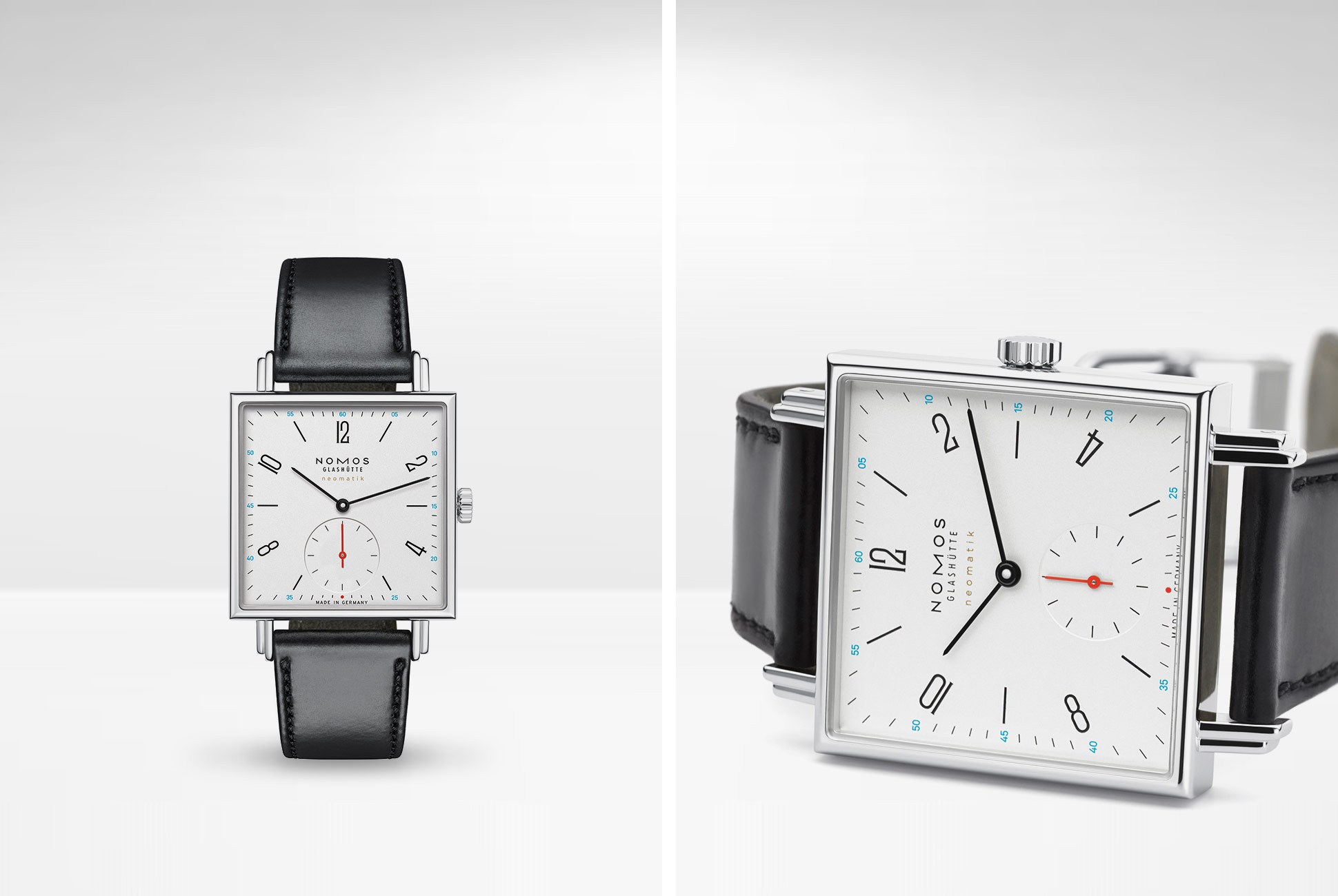 At just 7.3mm thick, Nomos’s dressy, square Tetra is incredibly thin for any timepiece, let alone an automatic. That’s thanks to Nomos’s in-house DUW 3001 caliber, a super-flat movement that’s only 3.2mm thick. The clean, Bauhaus-inspired dial design and delicate lugs are the perfect accouterments to the Tetra’s minimal proportions.