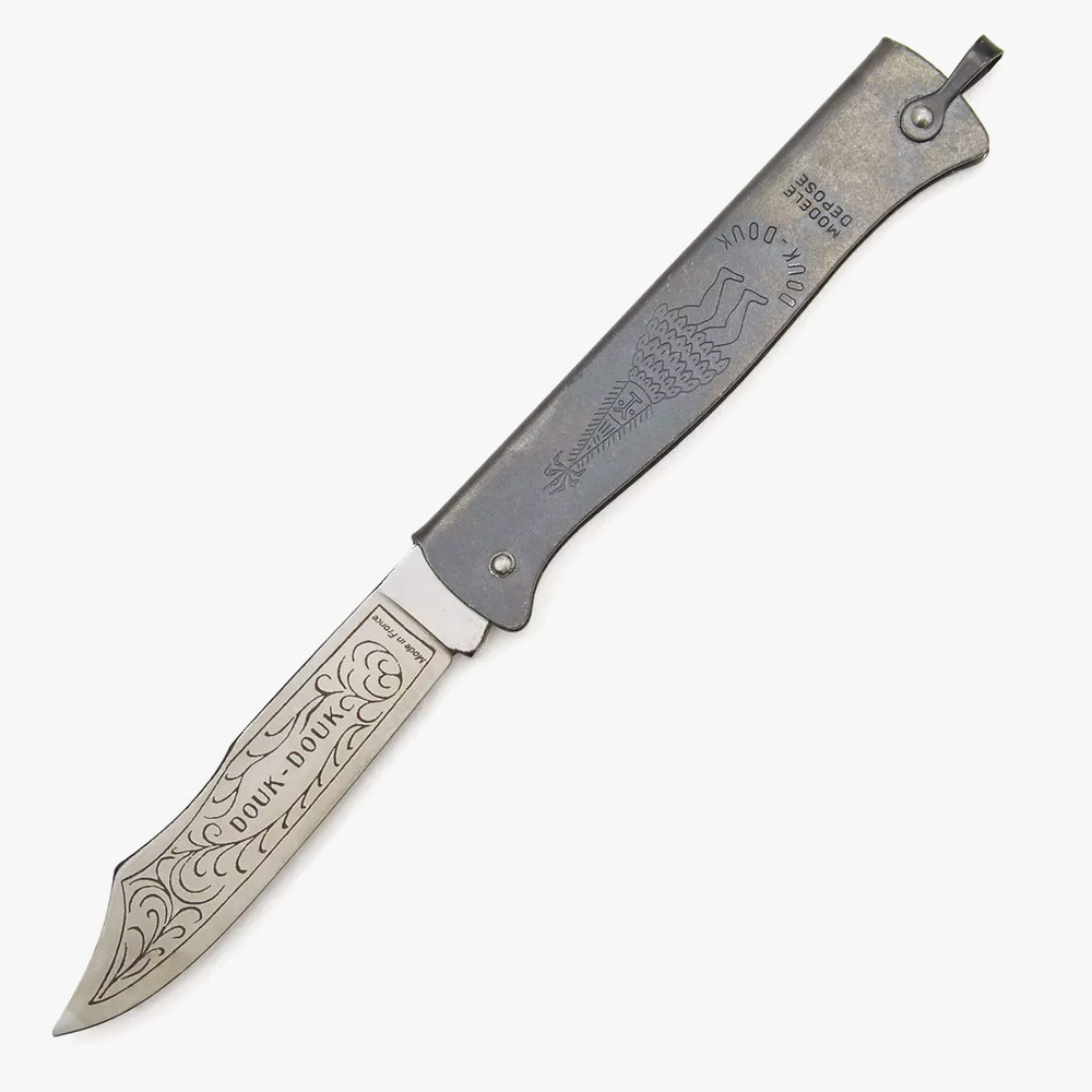 Made in France since 1929, this iconic folding knife, used for decades by the French Foreign Legion and Armies, depicts a Melanesian spirit incarnation known as “douk-douk.” Keep it close by to open boxes or stubborn envelopes.