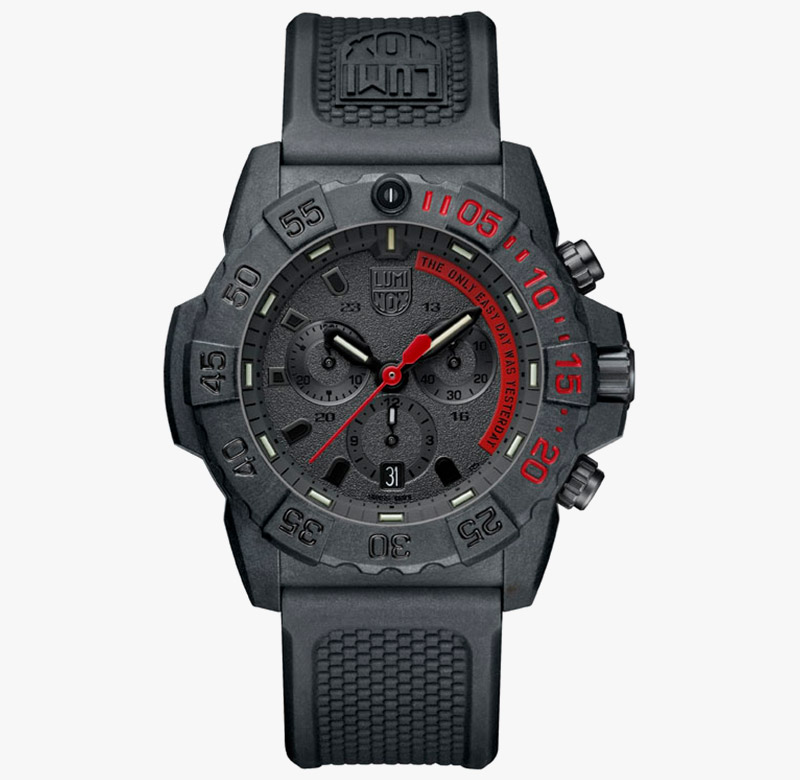 “The only easy day was yesterday.” That’s the mantra of the Navy SEALS, the elite fighting force that undertakes missions in the world’s jungles, swamps and oceans. Your father’s job may not entail similar duties (or maybe it does), but he’ll still appreciate the inspiration behind their message, displayed on his wrist in Luminox’s recently-updated collection. The watchmaker designed the 3580 Series to take a beating, equipping it with a Carbonox case, scratch-resistant crystal and waterproofing up to 200 meters. It’ll go anywhere he goes with all the functions of a chronograph at the ready.