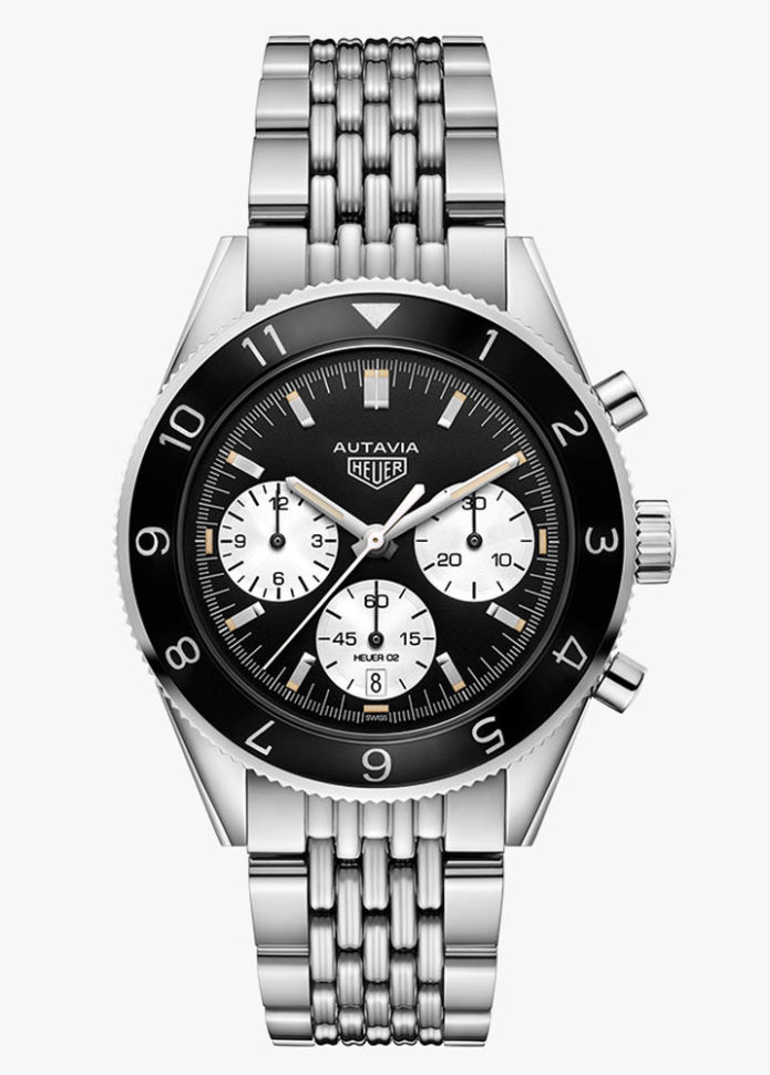 Autavia combines the spirit of the 1960’s with contemporary styling. With a 42mm steel polished case and a black rotating bezel, three large, snailed white counters this automatic chronograph is understated and classic. It is water resistant up to 100 meters and comes with a polished steel bracelet and date window.