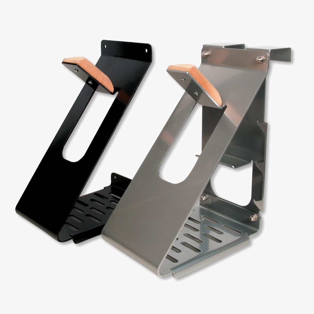 The Aerostich Helmet Holder Office Cube Adapter can effortlessly hang off any cubicle or be mounted to wall to keep helmets, gloves and jackets looking as professional throughout the day as their owner.