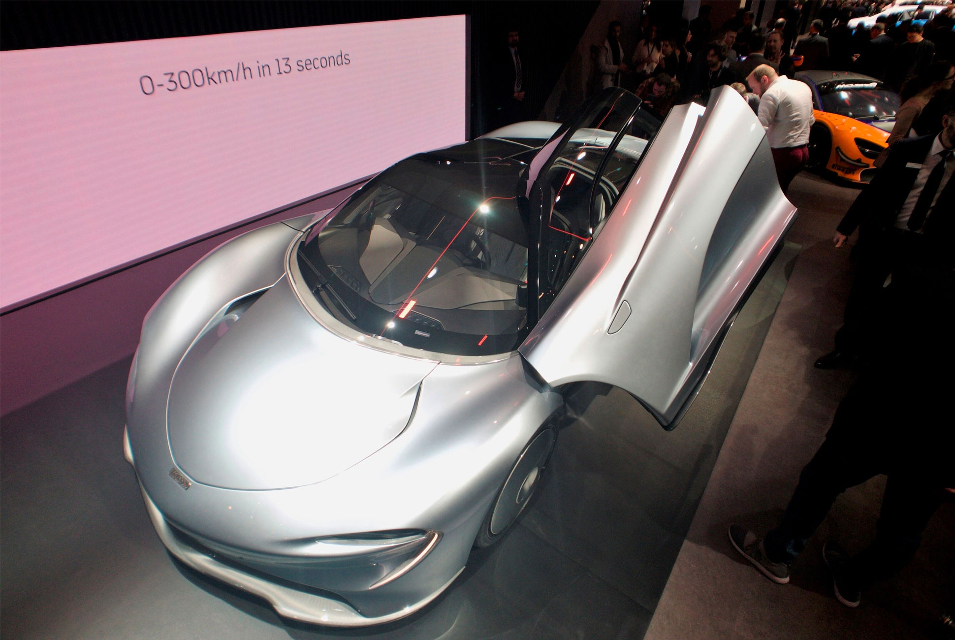 The British supercar specialists showed off their much-hyped Speedtail in Geneva. The 1,010-hp three-seater, ,with two passenger seats slightly behind either side of the driver is a spiritual successor to both the F1 from the 1990s and the more recent P1. It will have a hybrid powertrain and a top speed of 250 mph. The central positioning of the driver’s seat will give him or her a more natural perspective, better for turning tighter thanks to the consistently equal distance to the fenders. Only 106 will be made, starting next year.
