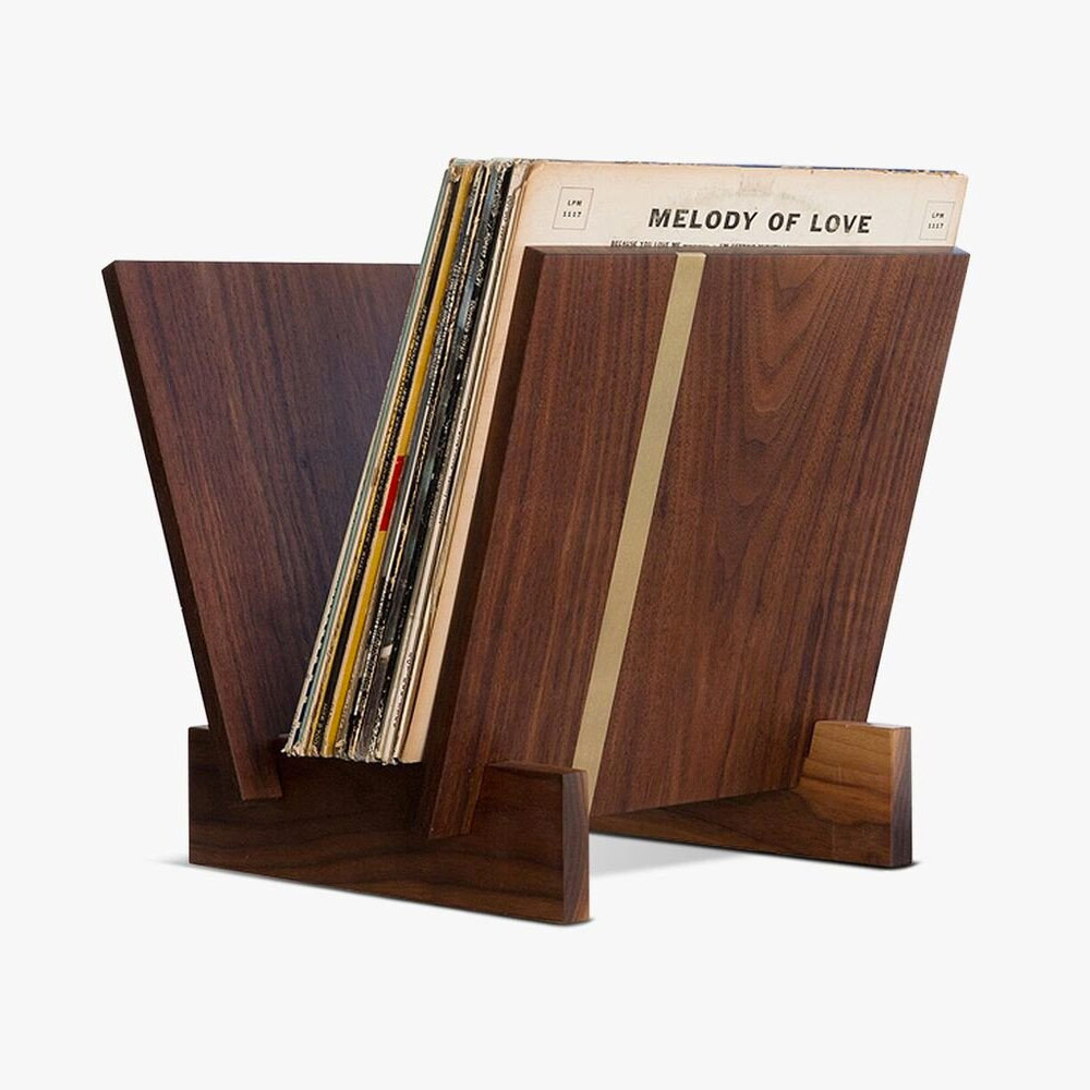 Who likes to enjoy a nice cocktail in monastic silence? Good tunes are always welcome, and this tabletop LP holder is a tasteful way to keep your favorite albums at arms reach.