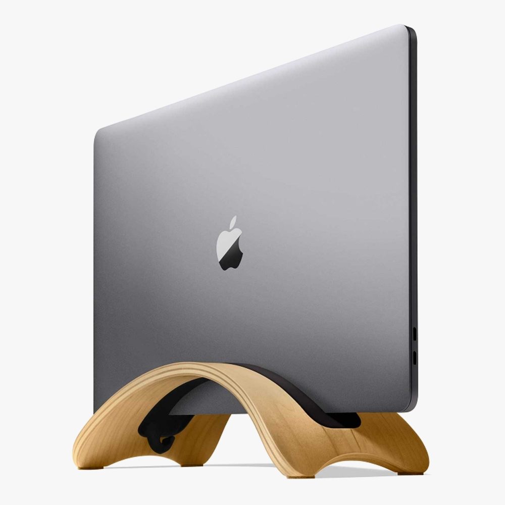 This handsome, arc-shaped MacBook stand is made from real wood, which stands out against the cold look of a metal laptop. It also clears up plenty of desk space when working with a monitor, making the home office feel all the more comfortable.