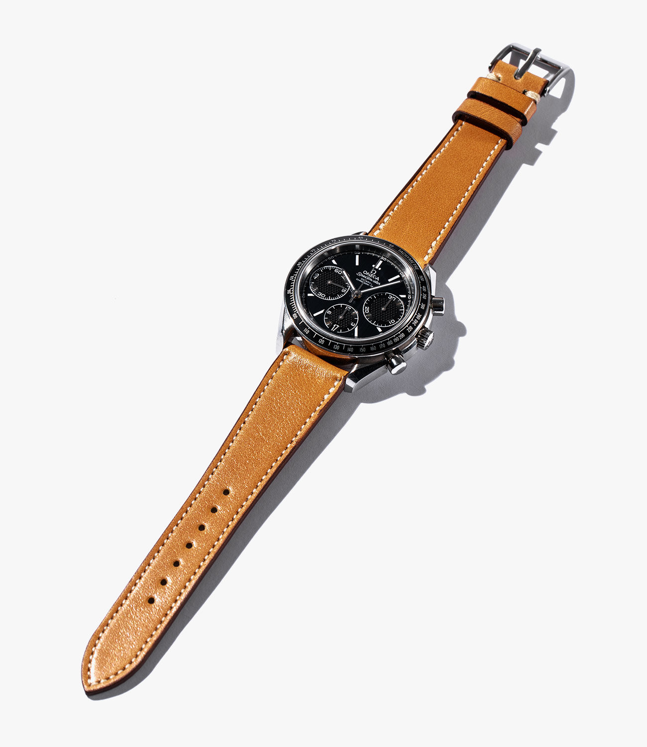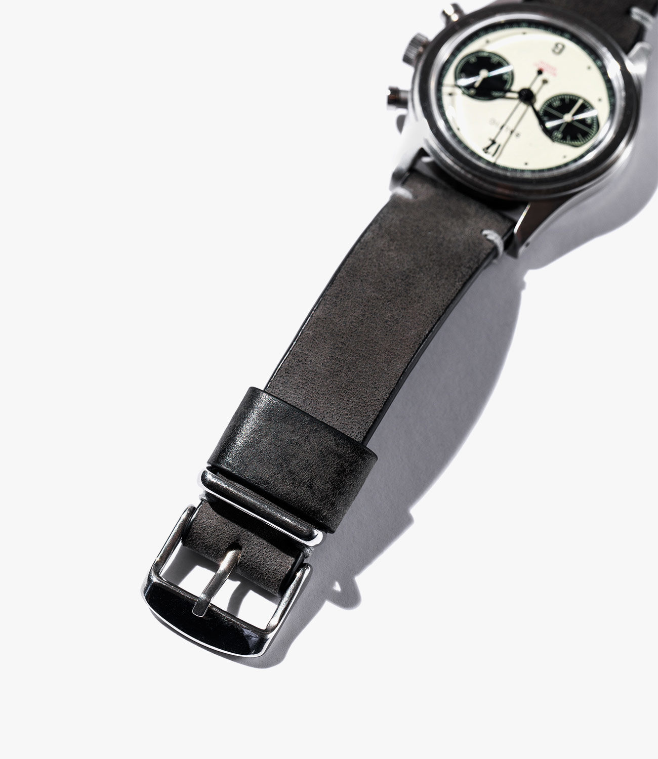 This is another stiff-upon-arrival strap that breaks in well with age, and the top-stitching along the perimeter and corner stitching beneath the buckle is done in black and is a subtle touch, as you have to handle the strap to really notice it. Available in 18, 19, and 20mm lug widths with a brushed steel buckle, this is a simple, classic racing strap from a reputable manufacturer, and if you like the general aesthetic but could do without the large holes through your watch band, there’s always the Racing version, available in three colors.