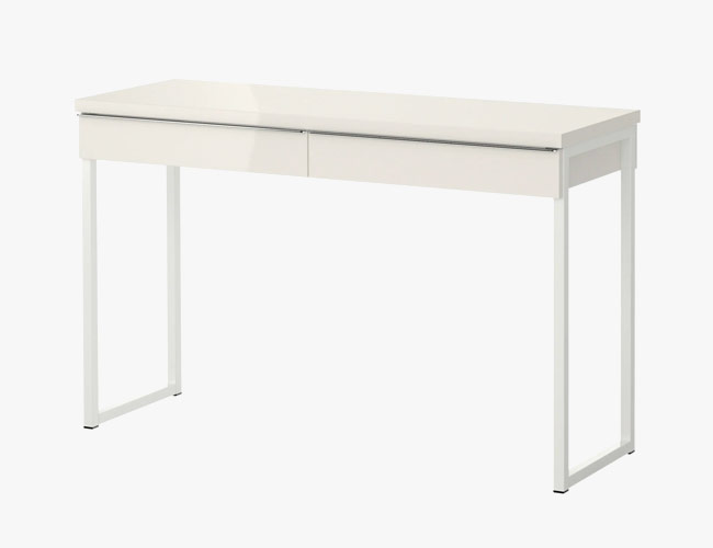 Ikea’s consistent blend of no-fuss designs are, in general, anti-statement pieces. That’s not a knock against them, like this desk, not everything needs to pull your eye when entering a room. This one is much easier to assemble than most of Ikea’s stuff, has two wide drawers to limit clutter on the desktop.