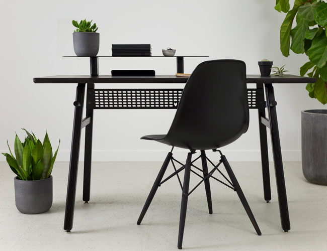 Poppin’s affordable, cleanly-designed office gear is designed to do a job for a long time and not make a big to do about it. The Key desk rides the line between a compact and normal-sized desk, has a drawer for storage and can be assembled in short order (and without tools). It also comes with a pretty decent warranty and is made with a nice powder-coated steel.