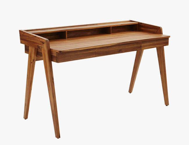 A blend of the architect and drawing desks (they’re pretty close anyway) and an upright piano, the Drommen by CB2 is storage-forward and sturdy as can be. Its V-legs, extra-wide desktop space (58 inches), three drawers and three cubbies are all made out of a hardwearing, sustainable acacia wood. Throw a bright-colored task lamp on it and some sketch pads and you’re halfway to being a sketch artist.