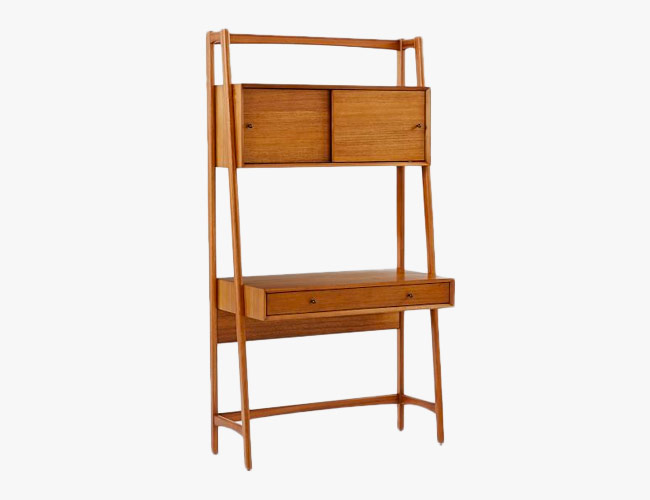 Wall desks are the compromise between folks with small living spaces, but high demand for storage. West Elm’s narrow mid-century wall desk is only 38 inches wide, but features a seat-level drawer a standing height cabinet with space inside and to stack stuff on top. The side-to-side-sliding cabinet doors and the and light-colored wood look is clean and simple mid-century. Pair it with its matching bookshelf and you’ve got an ideal mini-office.