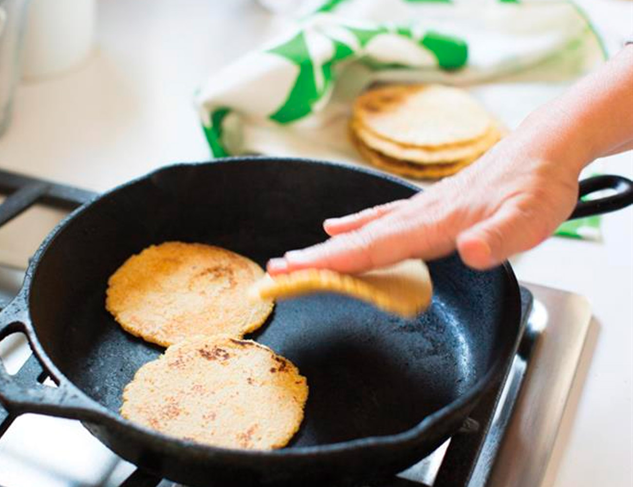 While a comal is the classic vehicle to homemade tortilla ascendence, none of us have one of those. A big skillet serves the same purpose with a bit less square-footage to work with. Remember to avoid using metal kitchen tools to flip if at all possible (we recommend using GIR’s excellent silicone flipper or your fingers, as there’s very little oil splash associated with tortilla making)