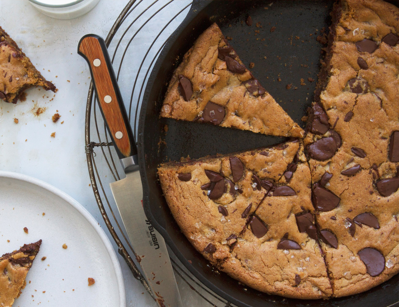 Baking doesn’t get as much airplay as well-seared meats (it doesn’t photograph as well), but it might be the cast-iron skillet’s greatest strength. Cookie cake is taken from a crumbly grocery store buy for a toddler’s birthday to a crispy, fatty, melty treat yourself dessert.