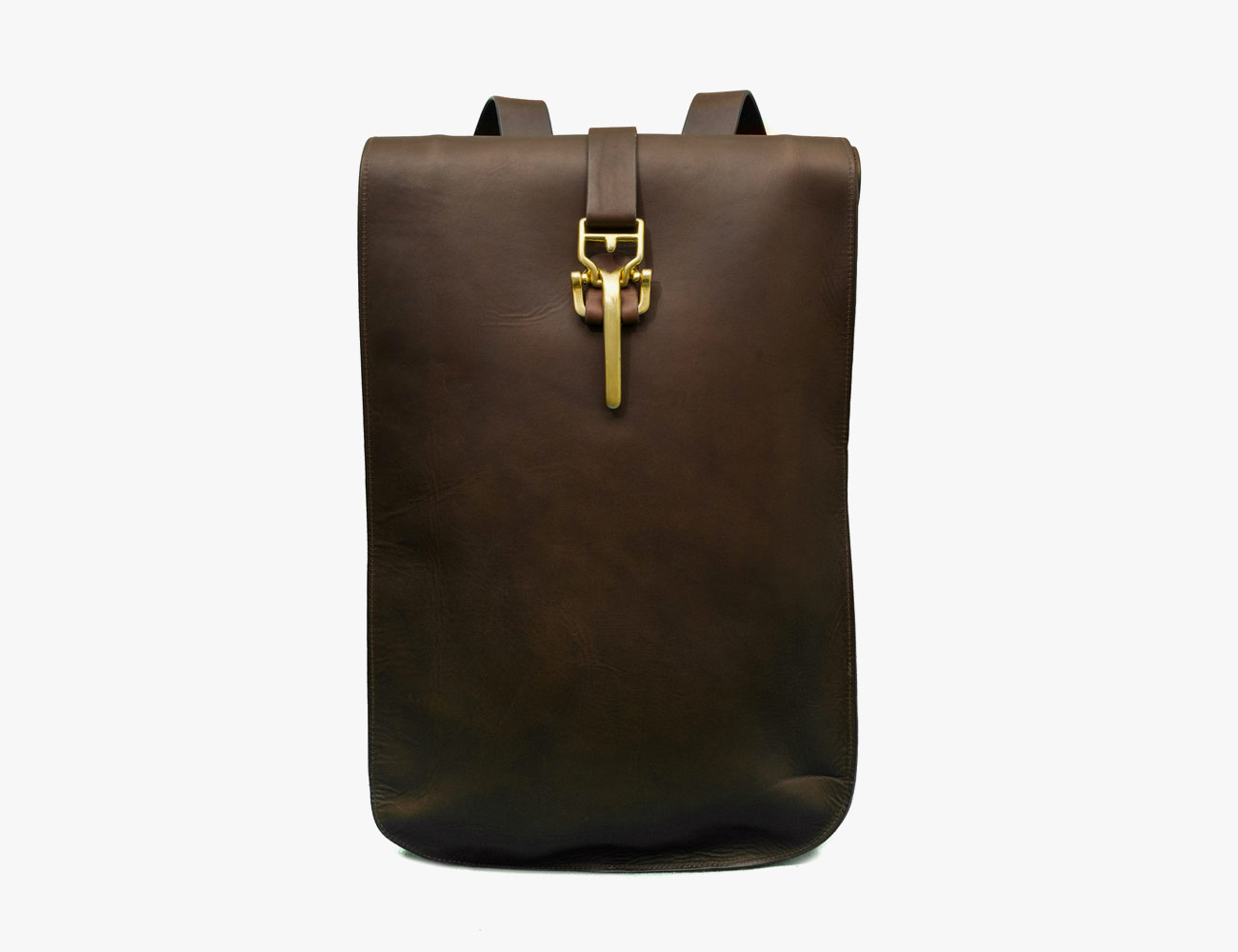 Made in Brooklyn, this roll-top bag is cut from vegetable-tanned Italian leather. It includes hand-tooled bras hardware, an interior laptop pocket, a large zippered pocket and a small zippered pocket on the back pannel for securing your wallet or phone.