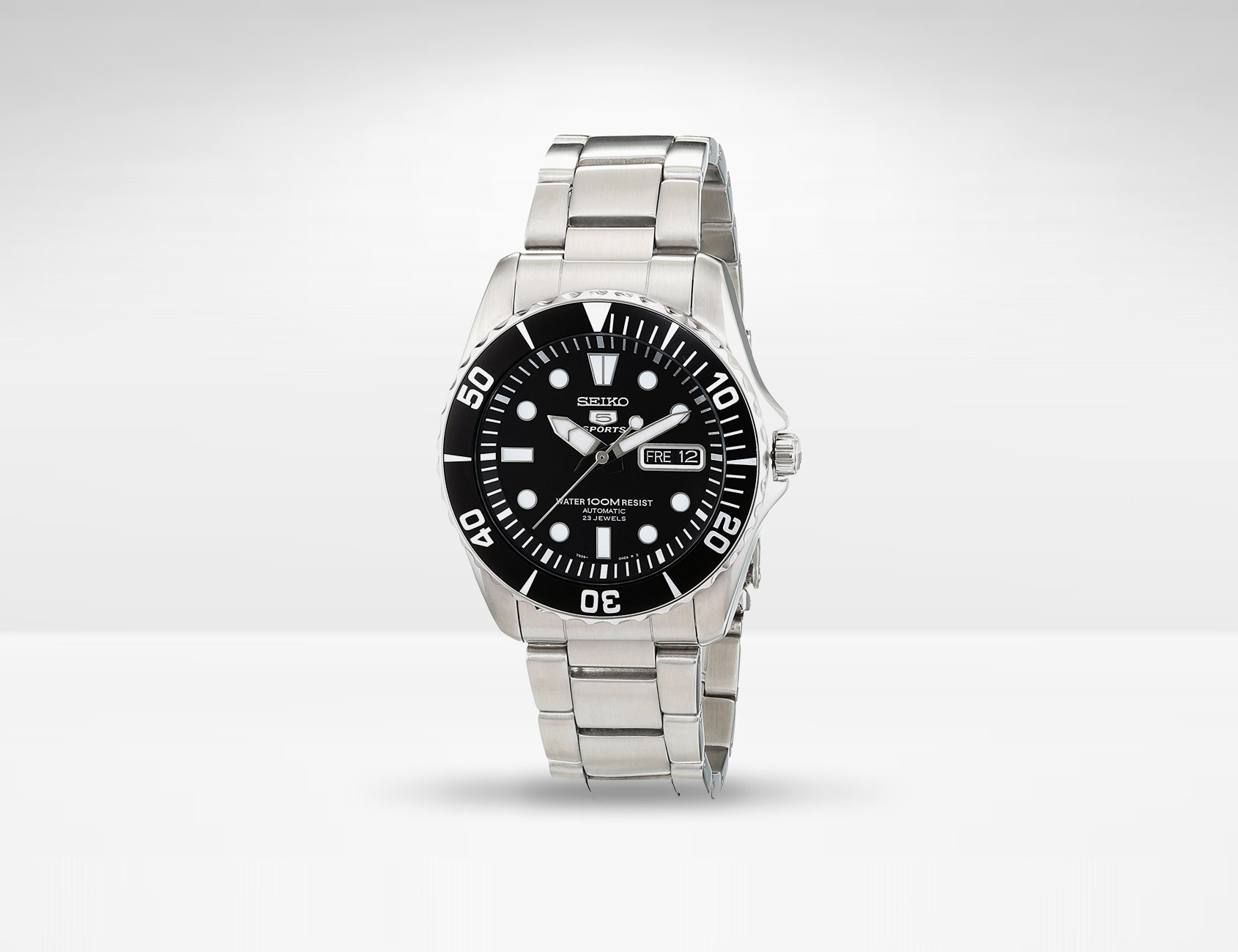 The Seiko 5 comes in many iterations, and the “Sea Urchin” dive watch is one of our favorites. In addition to using Seiko’s workhorse 7S36 automatic movement, it comes adorned with a unidrectional countdown bezel and steel bracelet.