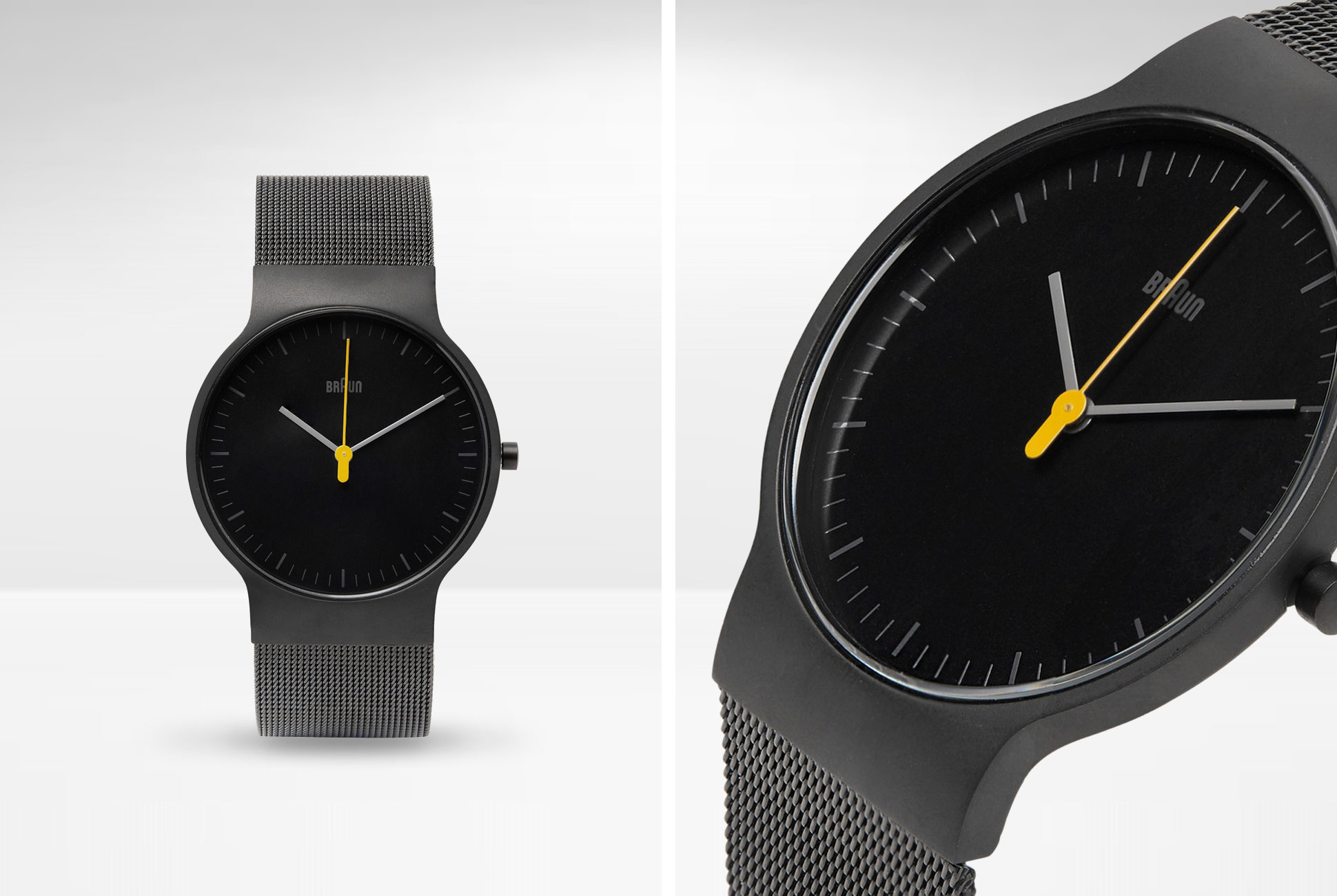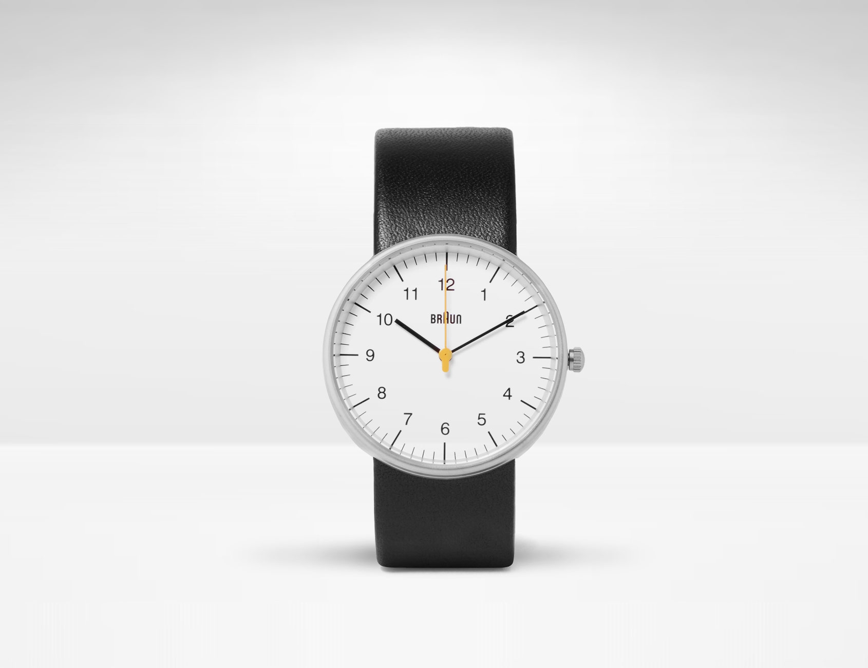 Braun’s minimalist aesthetic is perfect for someone looking for a wardobe accutremont rather than a showpiece. What’s more, graphic elements like the yellow seconds hand and austere font are sure to call to mind the brand’s legacy of Bauhaus-inspired product design.