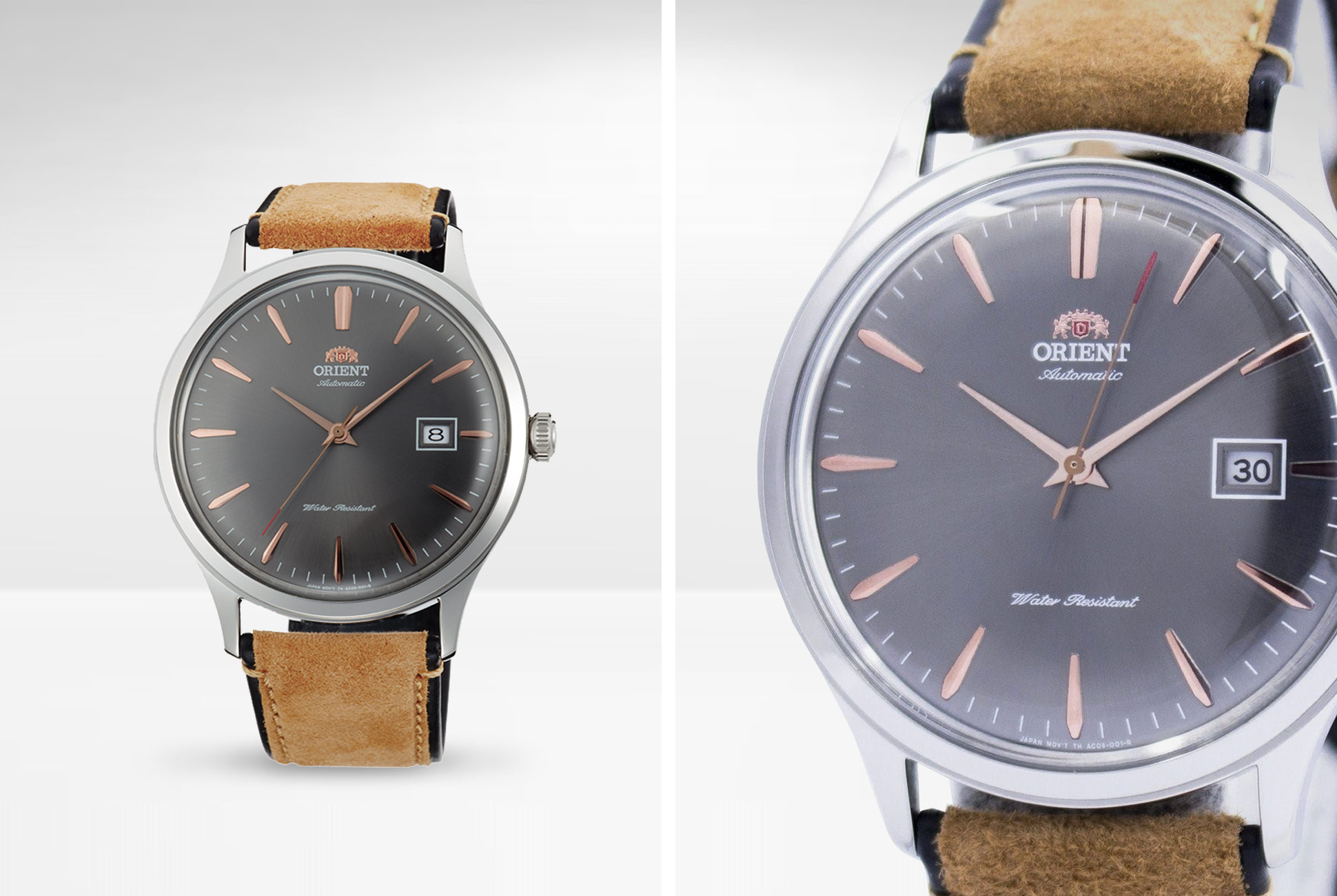 The latest iteration of Orient’s beloved, mid-century-style dress watch. The domed dial now comes in an excellent slate-gray colorway and features rose gold accents. The watch also gets an updated suede strap. Ticking underneath is an automatic movement from Orient featuring hand-winding and hacking seconds.