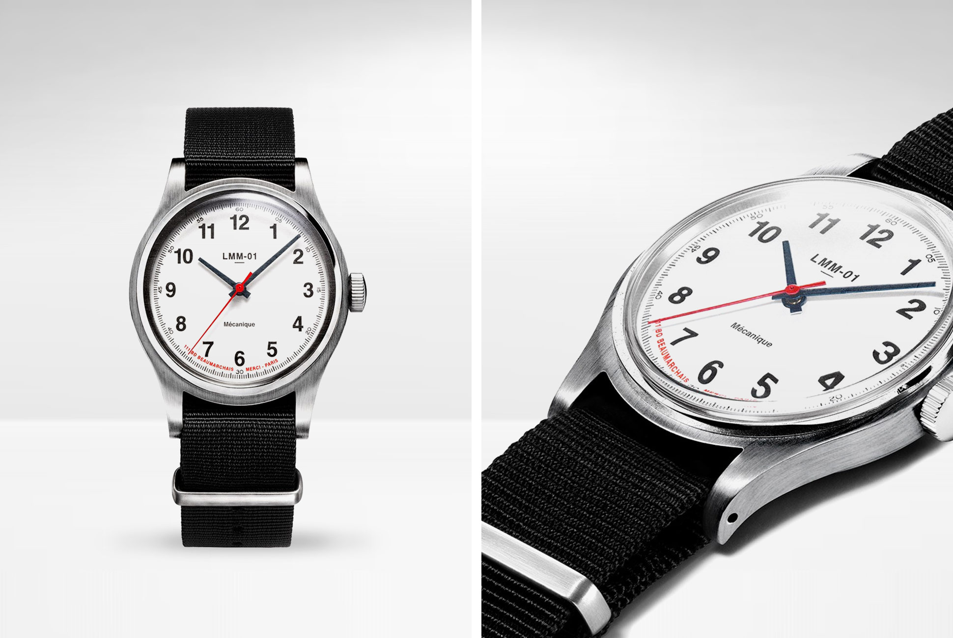 Parisian “concept store” Merci recently launched its first timepiece, and it’s one hell of a looker, like a crossover between a modern Mondaine watch and a vintage field watch. The dial is adorned with Helvetica numerals and red accents, and for under $400, you can even get it equipped with a Swiss-made, hand-winding mechanical movement from ETA (a quartz version is also available for less).
