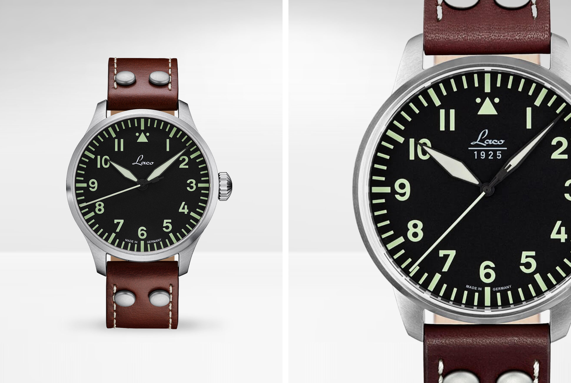 German watch brand Laco is perhaps best known for its super simple, super legible flieger pilot watches. This Augsburg doesn’t stray far from that formula: it comes with a stark black dial adorned with numerals given a healthy dose of lume, plus a big 42mm case (a smaller 36mm variant is also available for fans of small watches). Inside ticks an automatic movement from Miyota, and the whole thing comes affixed to a thick brown leather strap.