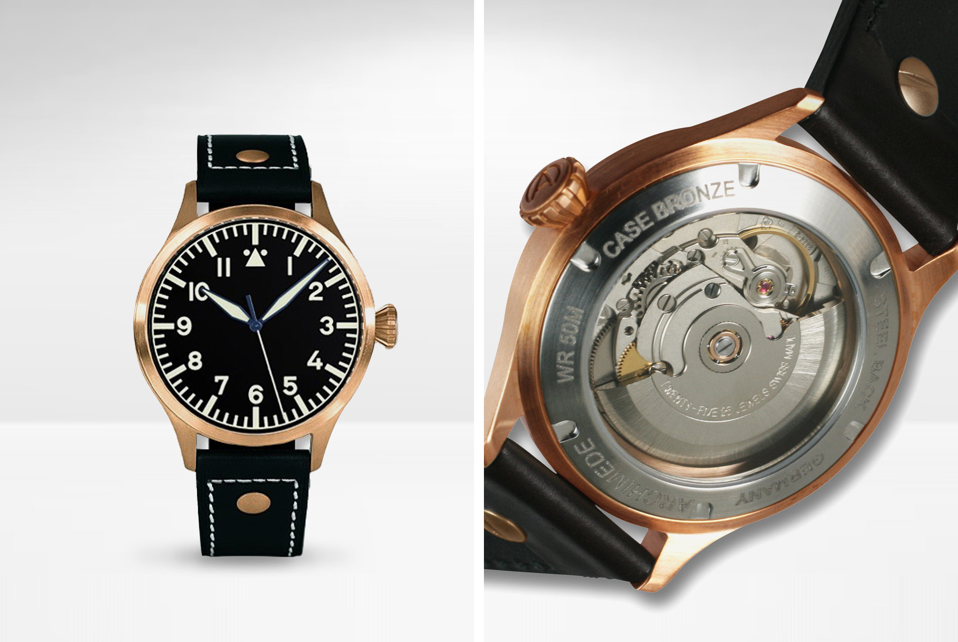 Bronze has become an exceedingly popular choice of material for watch cases in recent years, championed by big names like Tudor, Zenith and Panerai (to name a few) for its rich, eye-catching hue and its propensity to patinate with age. While the material is most utilized by high-end brands, German microbrand Archimede makes a bronze version of its flieger-style pilot’s watch that slots in well under $1,000 and even features an ETA 2824-2 automatic movement inside.