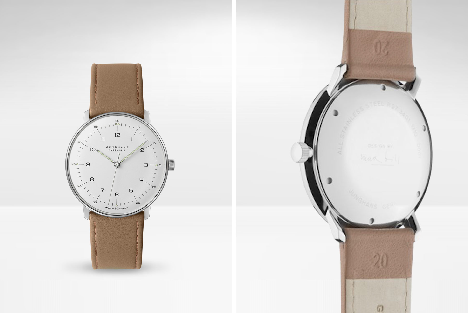 Understated, slim and impeccably clean, this Bauhaus-inspired Junghans is perfectly sized to peek out from under a French cuff. Its case measures 38mm and houses a self-winding movement between 10mm of polished stainless steel and Sicralan-coated plexiglass. Super Luminova has been applied to the hour and minute hands as well as markers at both 6 and 12 to help it shine through the night.