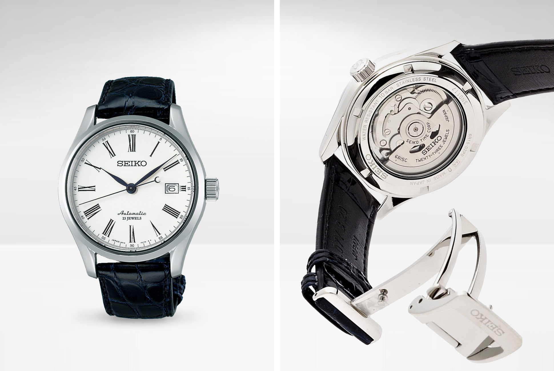 Similarly, Seiko makes some incredible value dress watches under $1,000, too. Most notably, the brand has introduced its Presage line to the U.S., and with it comes a host of reasonably priced watches that bridge the gap between the brand more budget-friendly options and high-end Grand Seikos. Among those watches is the SARX019, which, amazingly, features a handcrafted enamel dial, joining the ranks of brands like Patek and Ulysse Nardin. Seiko’s reliable Seiko 6R15 automatic movement ticks away within, and the watch comes affixed to a leather strap with a deployant clasp.