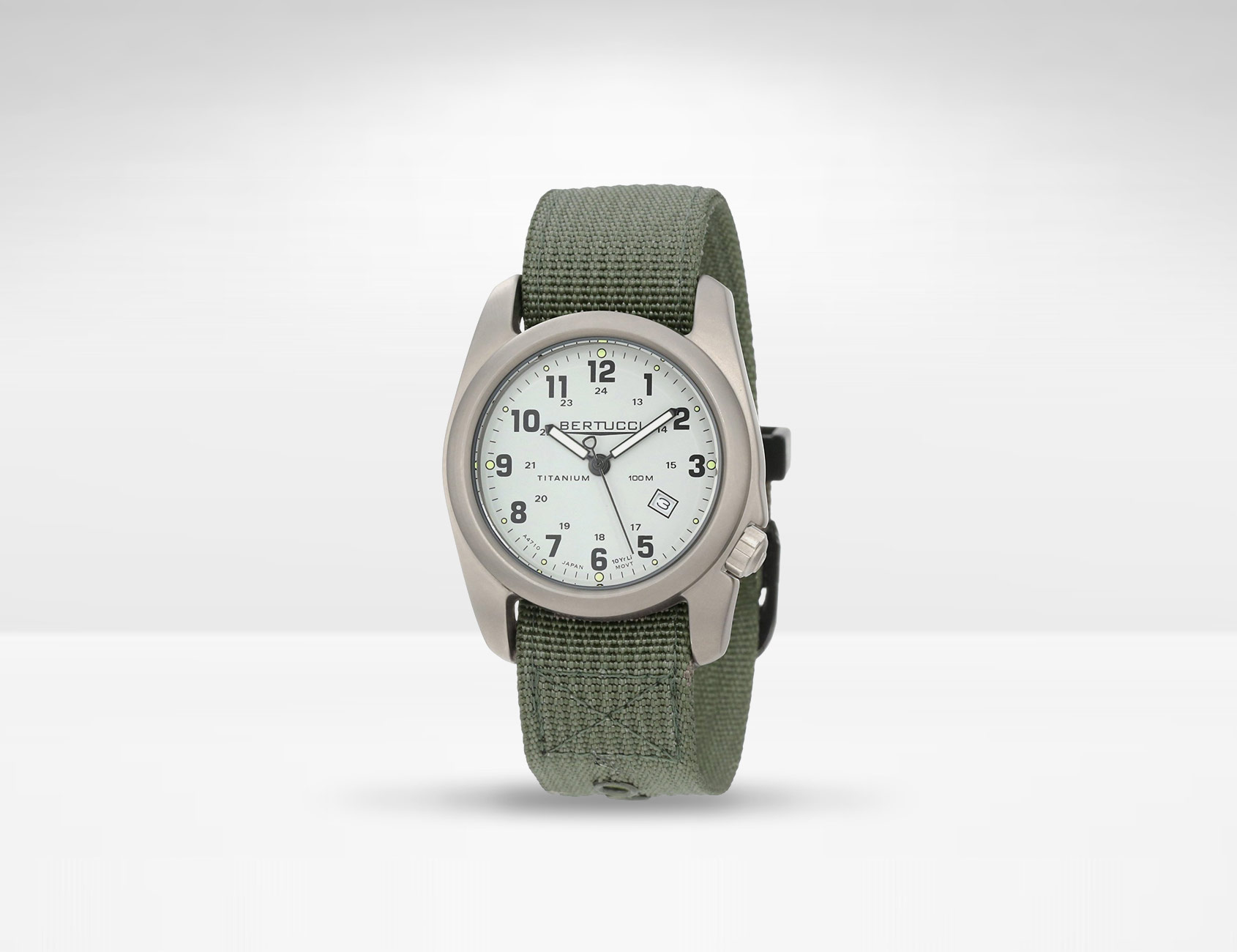 Cases made from solid titanium — loved for its lightweight, durable and hypoallergenic properties — are not such a common site on sub-$150 watches, which is what makes the young U.S. watch brand Bertucci an enticing option. Similarly enticing is the classic field watch dial design, the Japanese quartz movement inside and a 100-meter depth raiting.